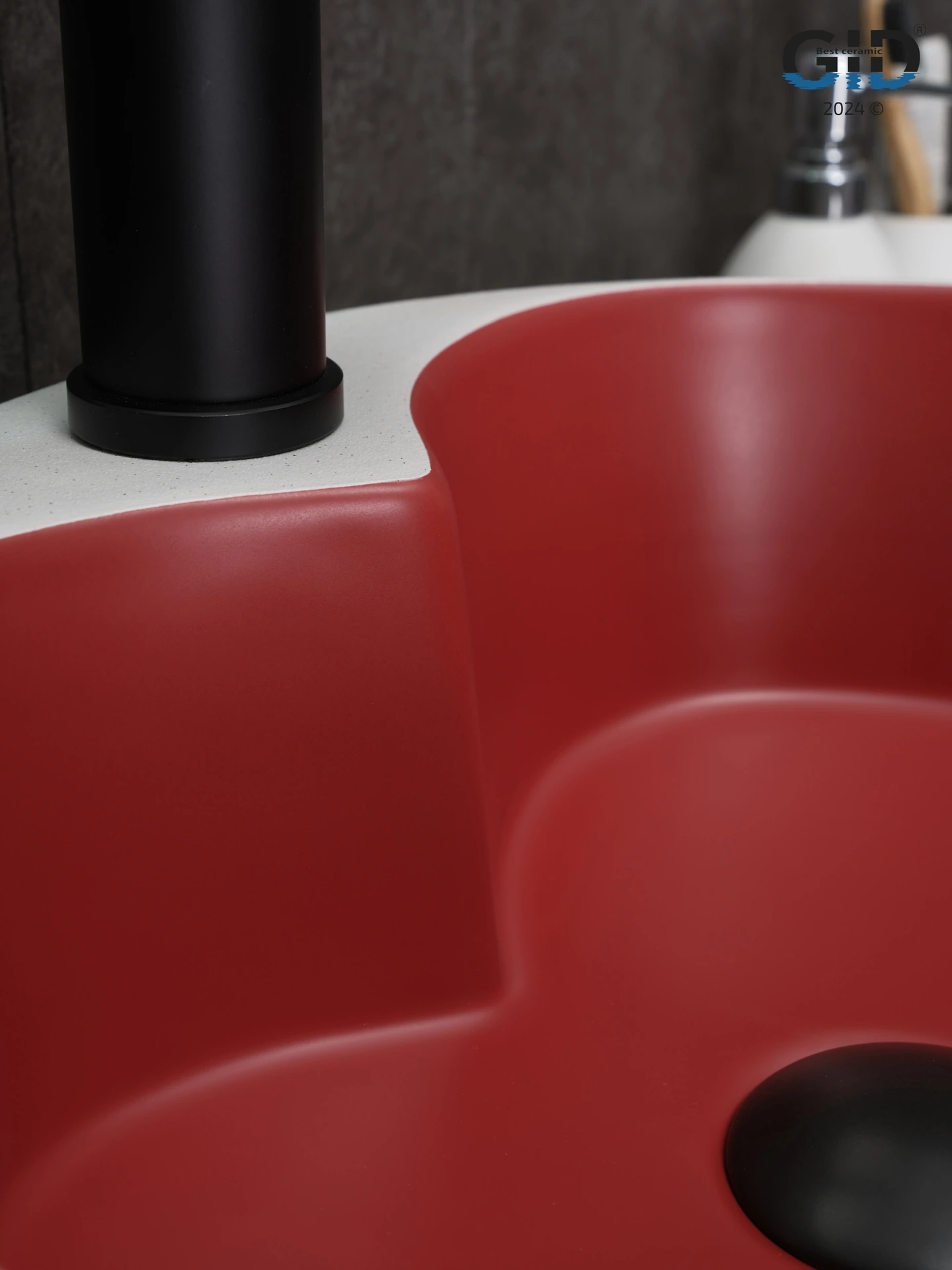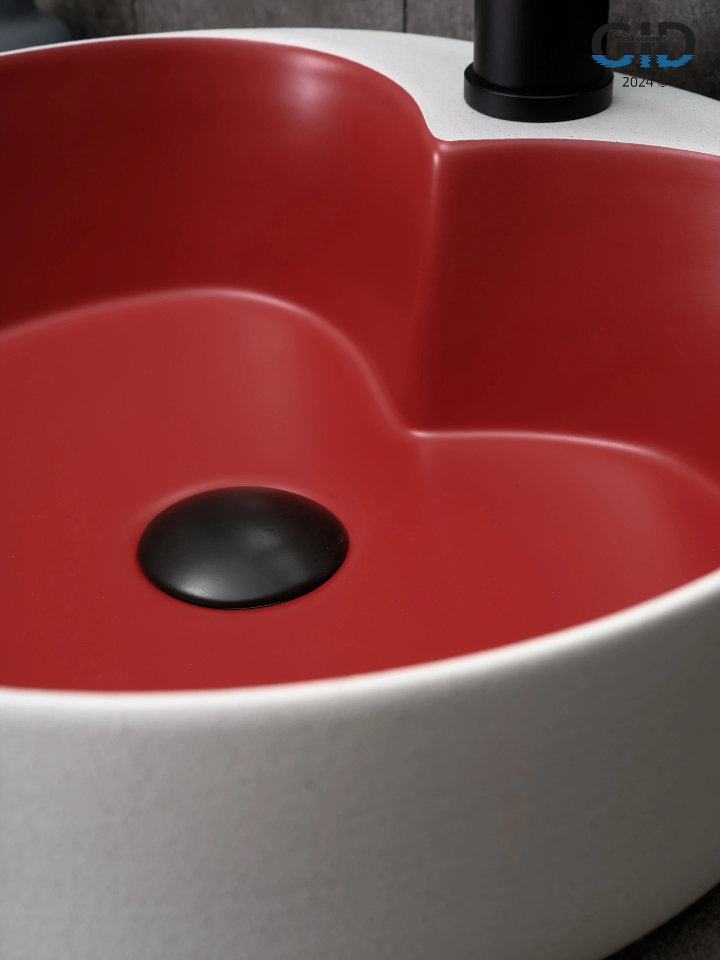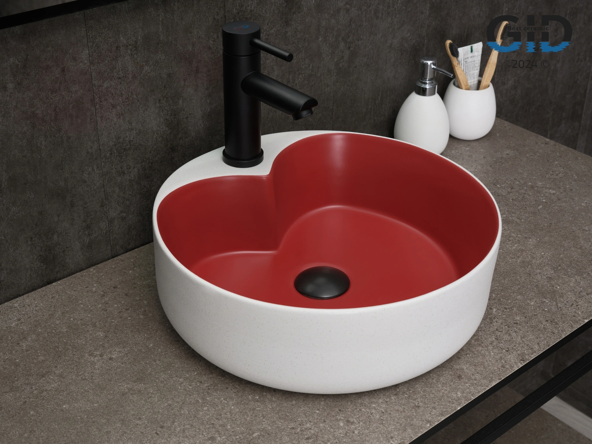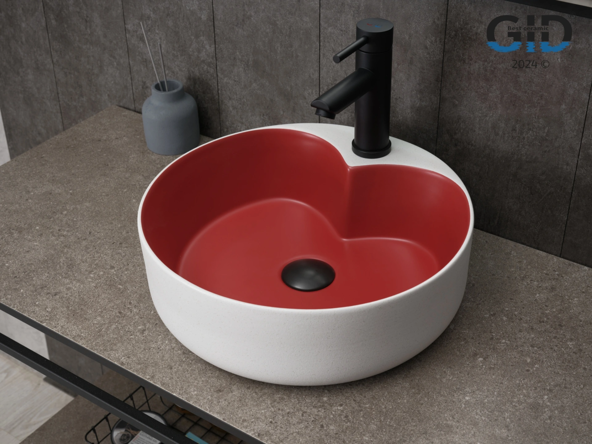 Раковина керамическая Gid Esfera 52237 40х40 накладная цвет белый/красный 1 отверстие под смеситель