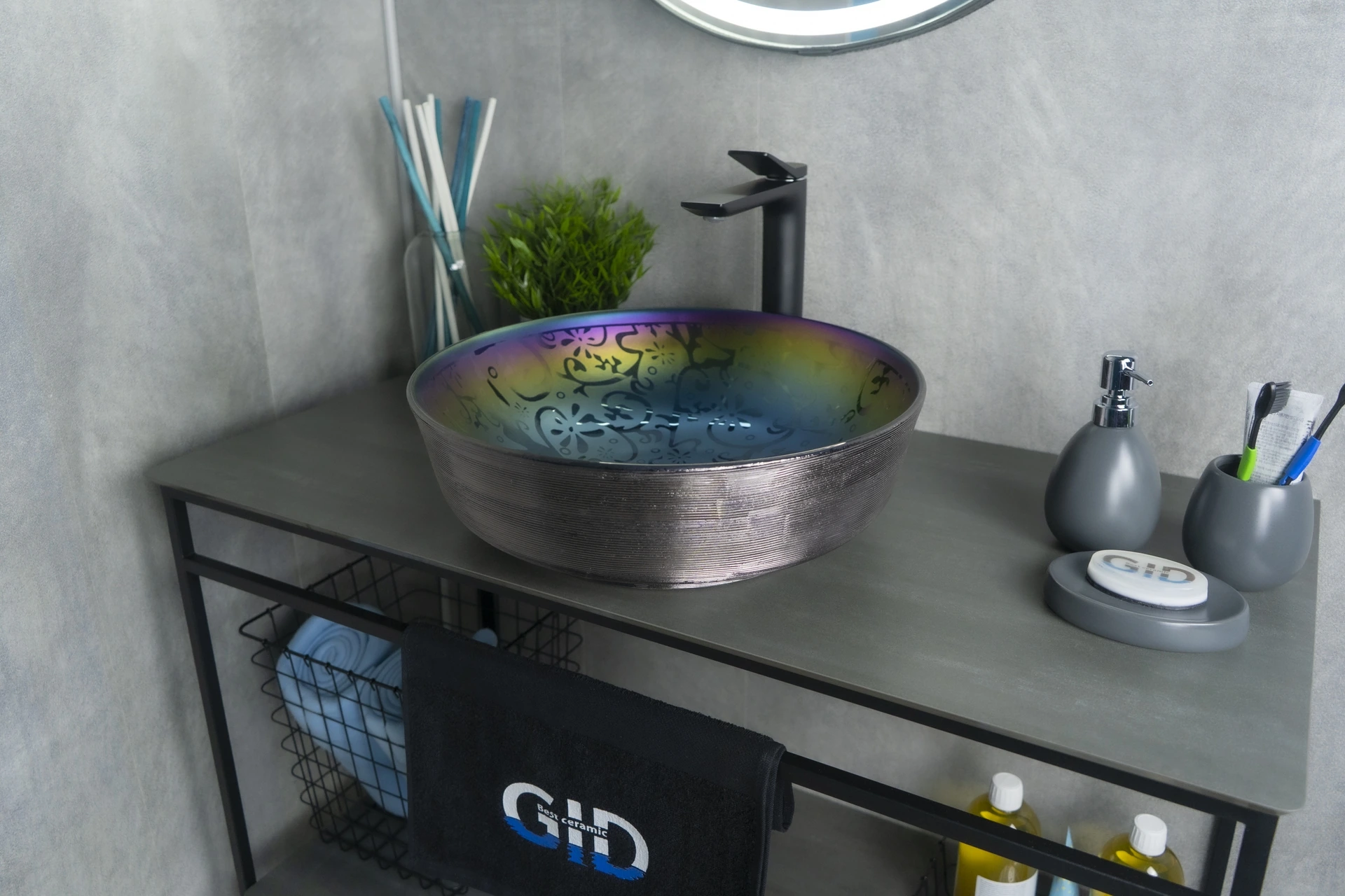 —Раковина керамическая Gid Esfera 53332 40х40 накладная цвет хамелеон без отверстий под смеситель