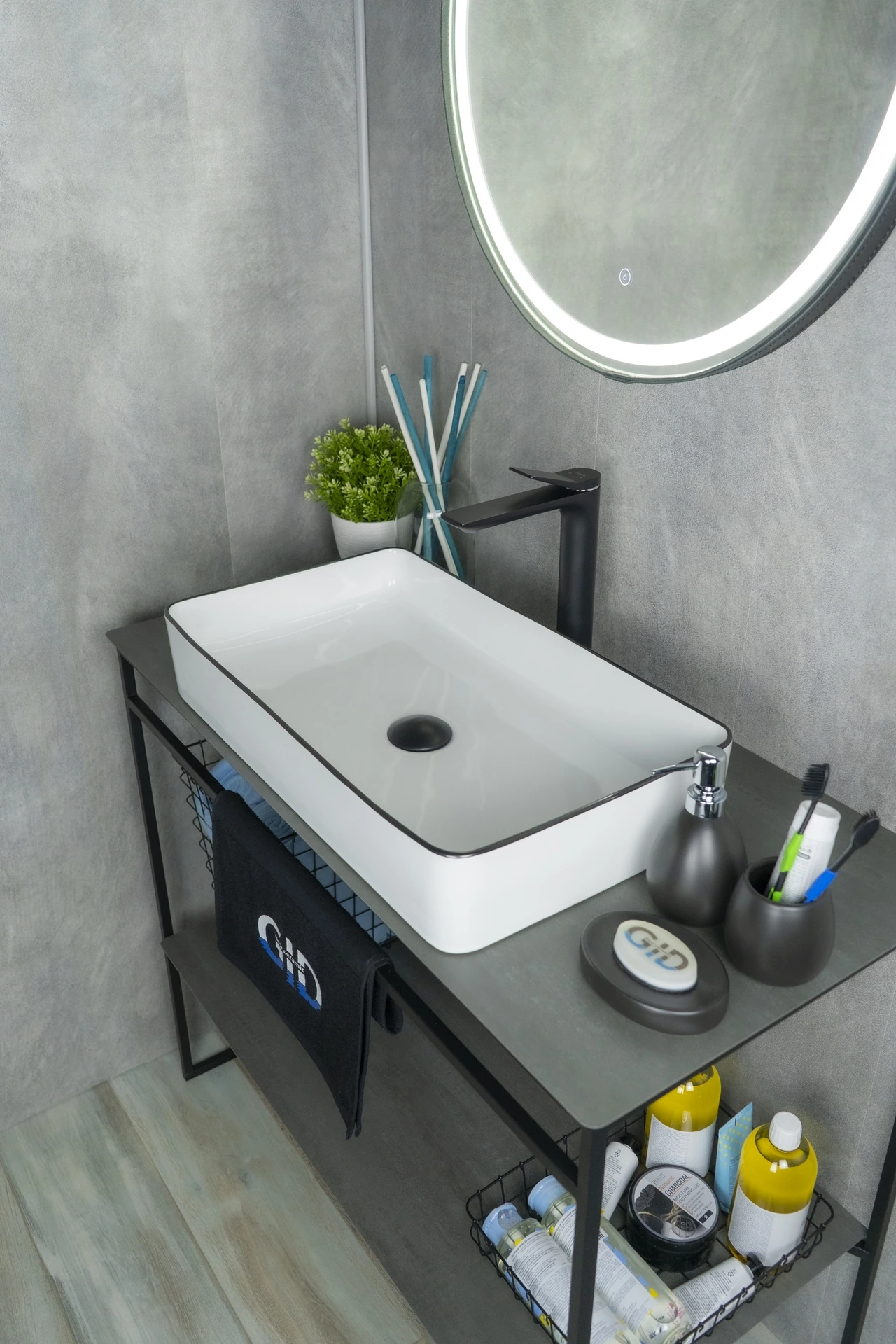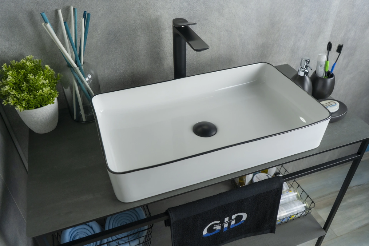 Раковина керамическая Gid Geométrico 52225 60х30 накладная цвет белый/черный без отверстий под смеситель