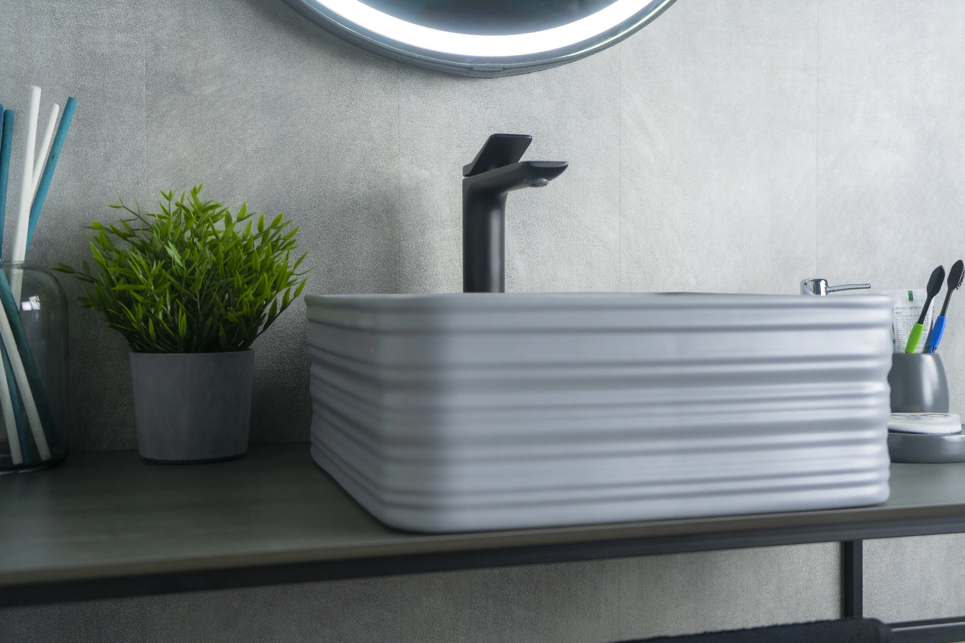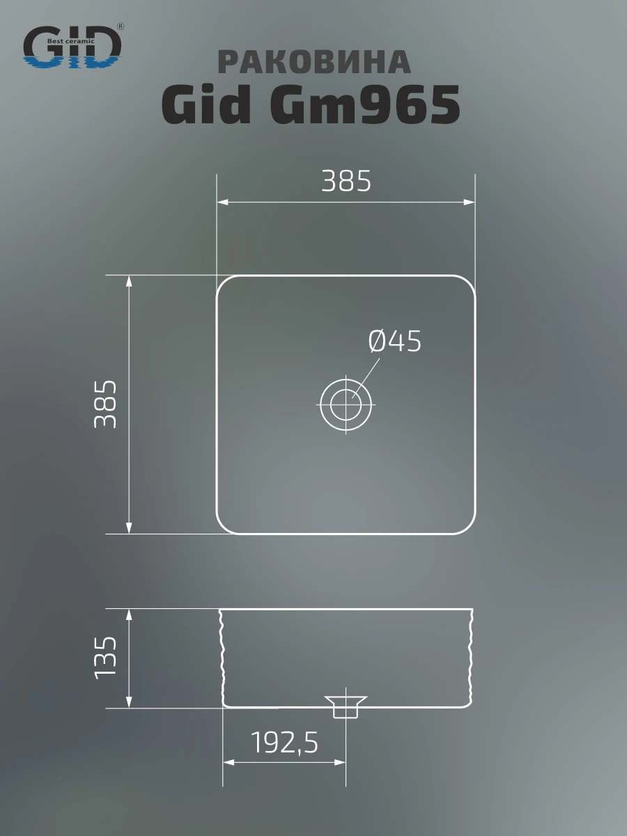 —Раковина керамическая Gid Geométrico 53338 40х40 накладная цвет серый без отверстий под смеситель