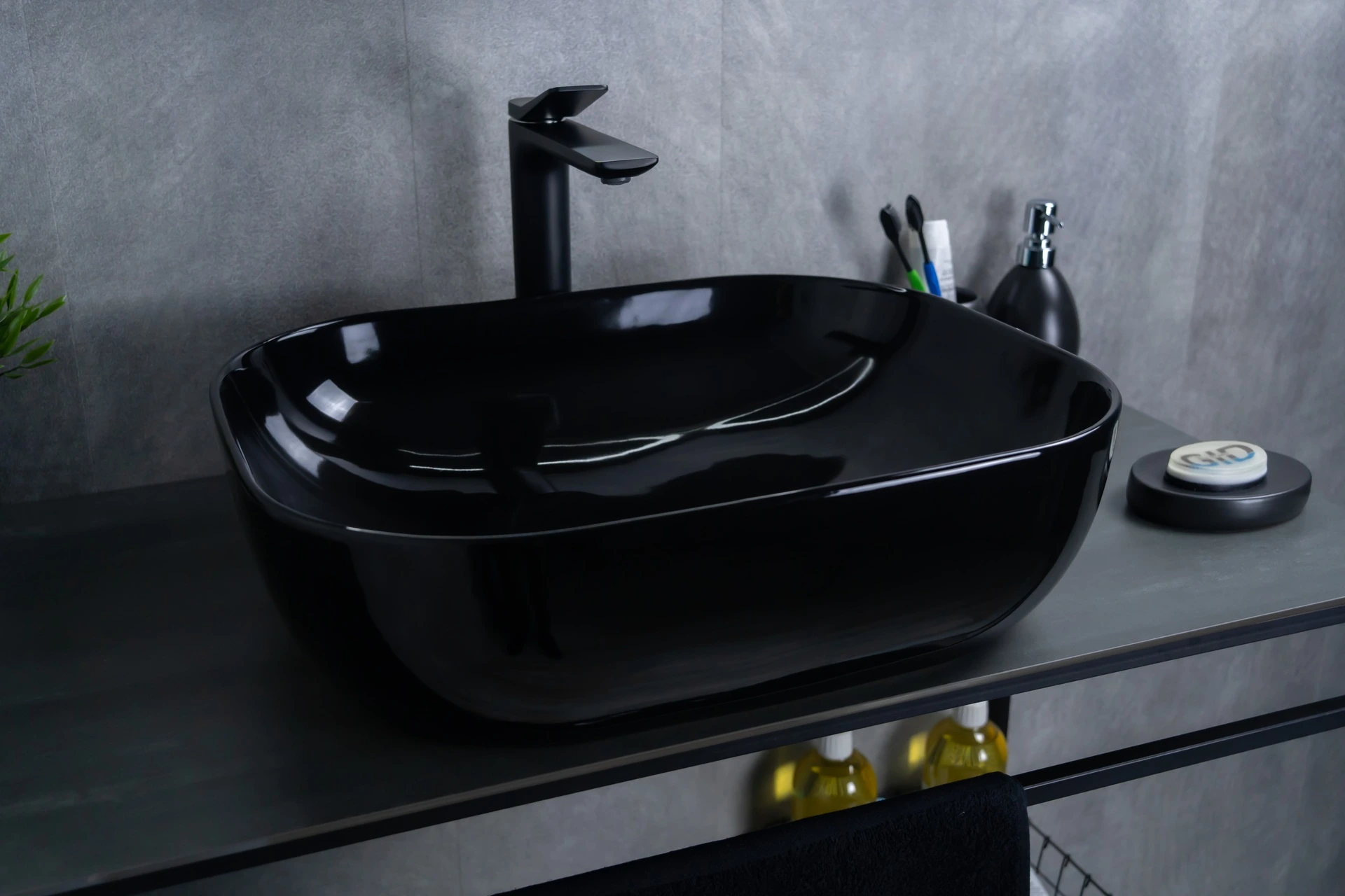 —Раковина керамическая Gid Geométrico 53347 50х40 накладная цвет черный без отверстий под смеситель