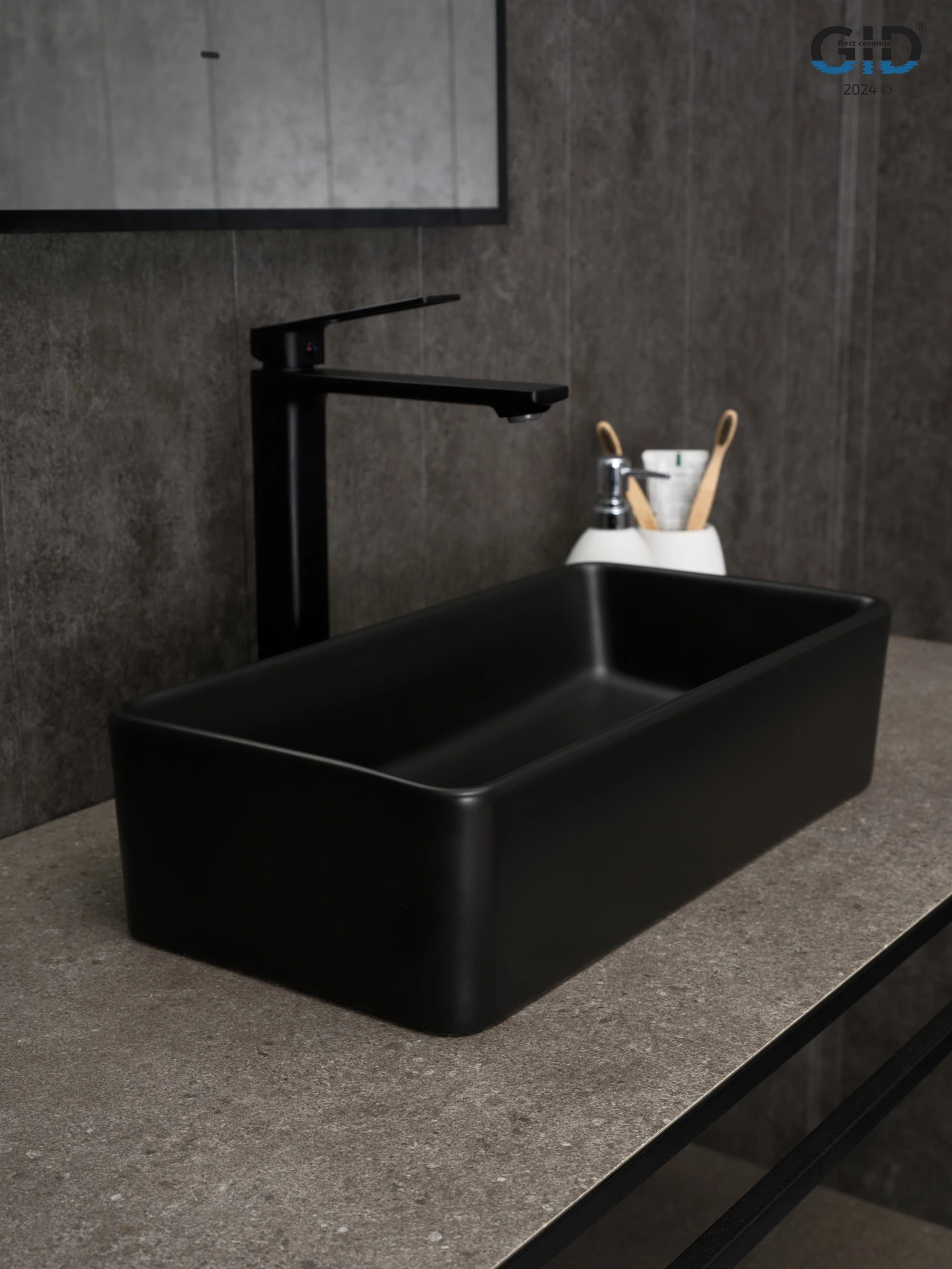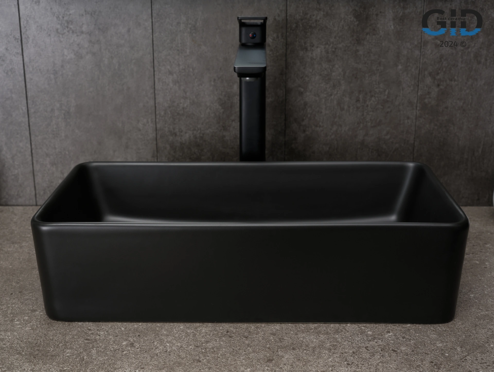 Раковина керамическая Gid Geométrico 53359 50х20 накладная цвет черный без отверстий под смеситель