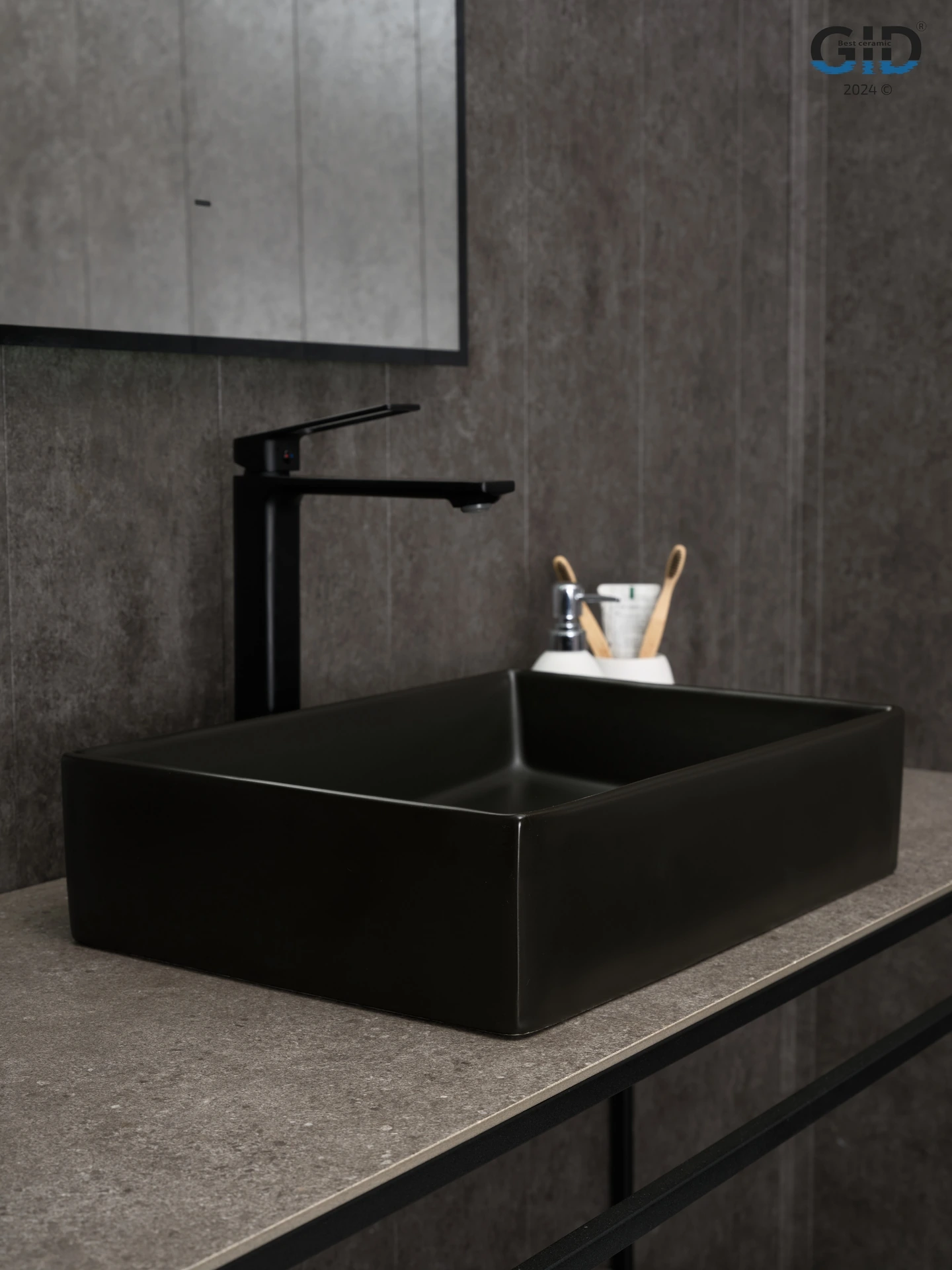 Раковина керамическая Gid Geométrico 53360 50х30 накладная цвет черный без отверстий под смеситель