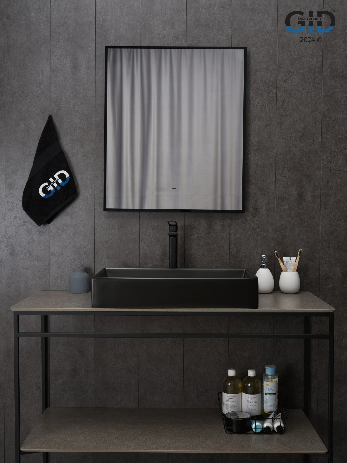 —Раковина керамическая Gid Geométrico 53363 60х40 накладная цвет черный без отверстий под смеситель
