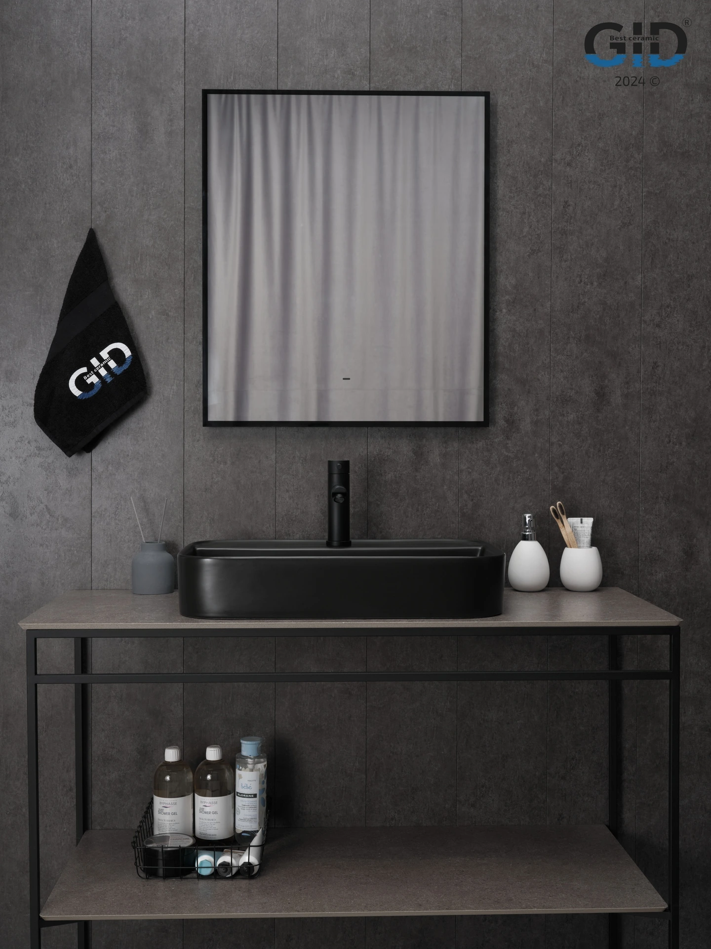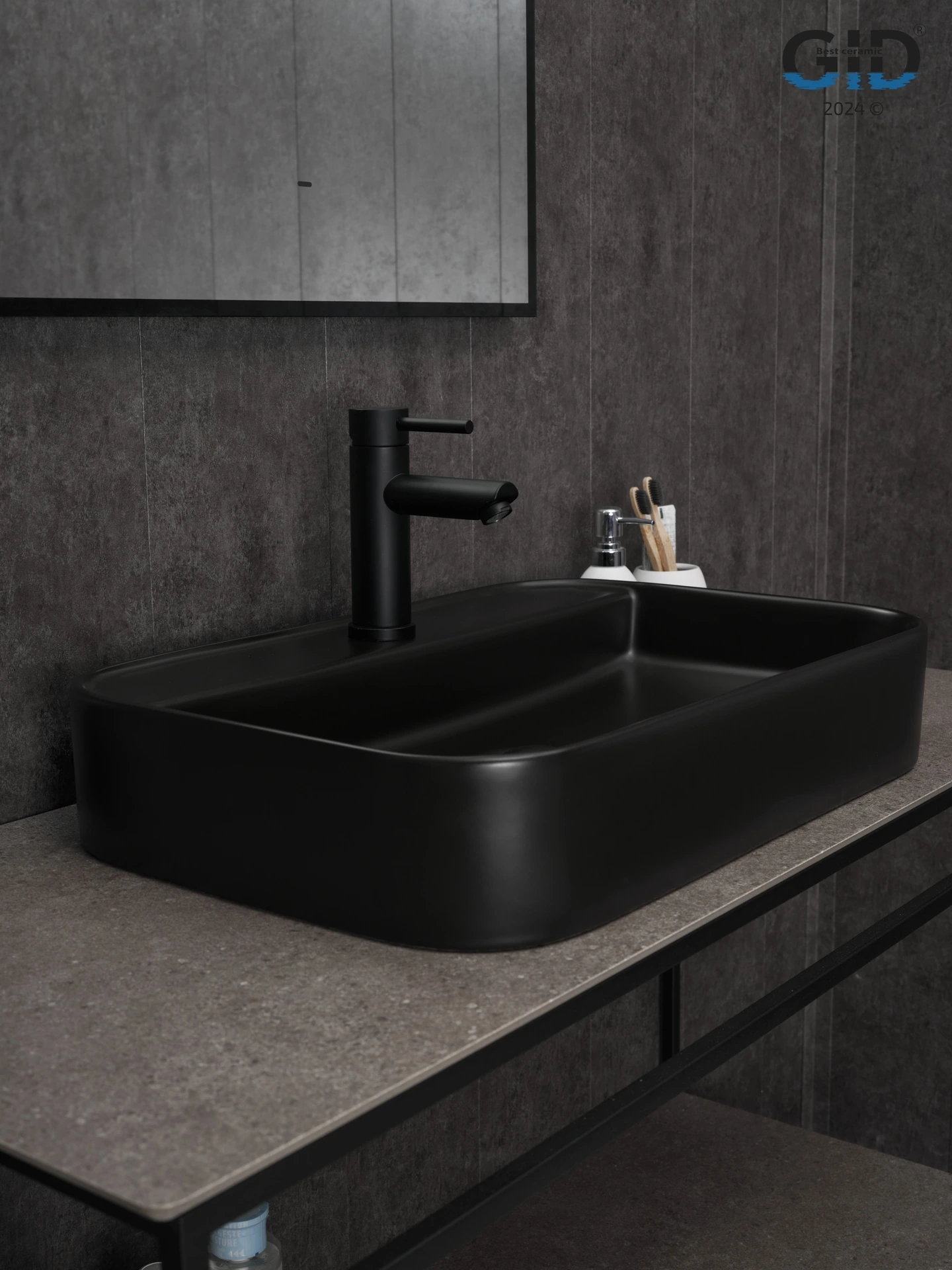 Раковина керамическая Gid Geométrico 53376 60х40 накладная цвет черный 1 отверстие под смеситель