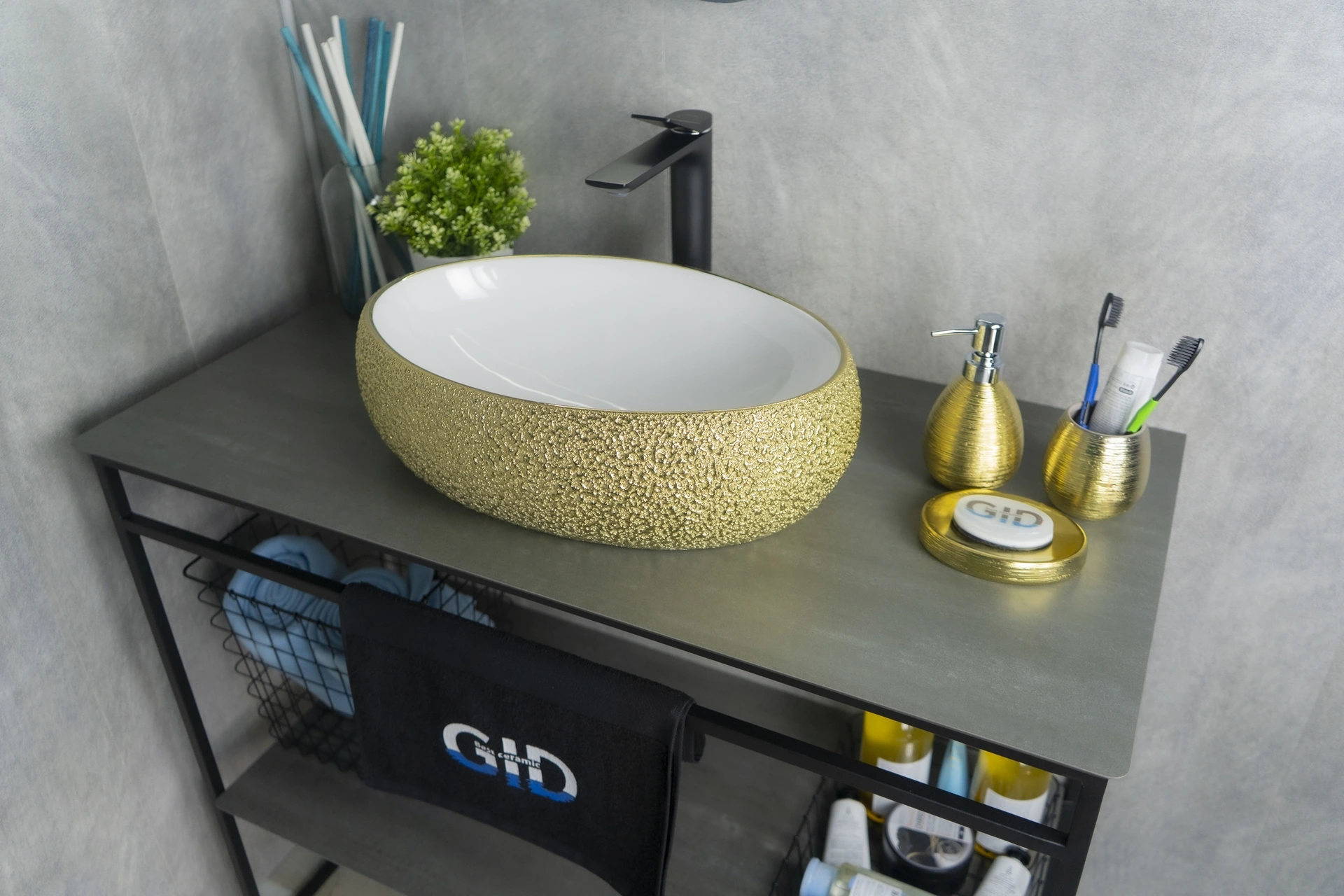 —Раковина керамическая Gid Lago 52219 50х30 накладная цвет белый/золото без отверстий под смеситель