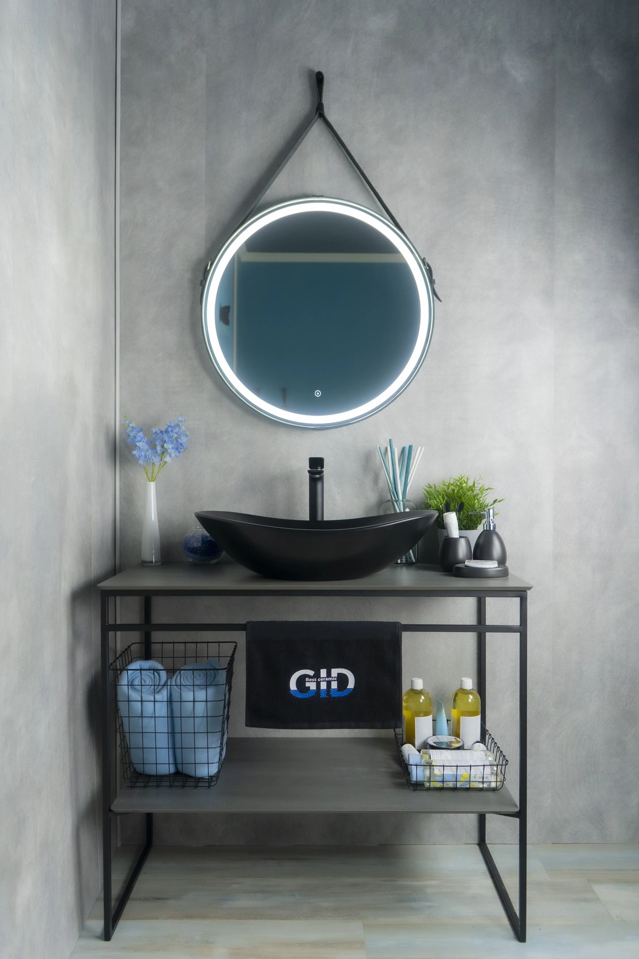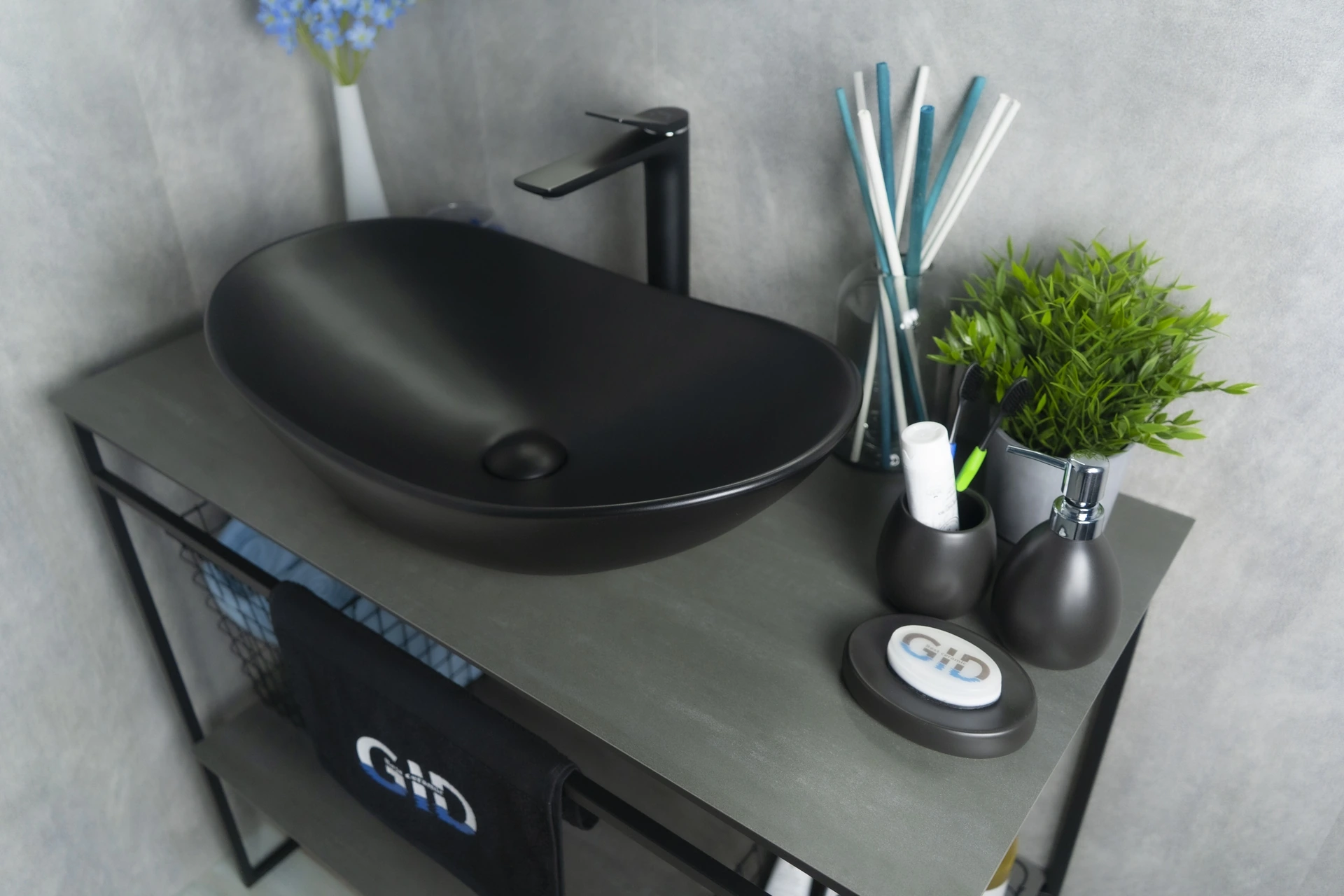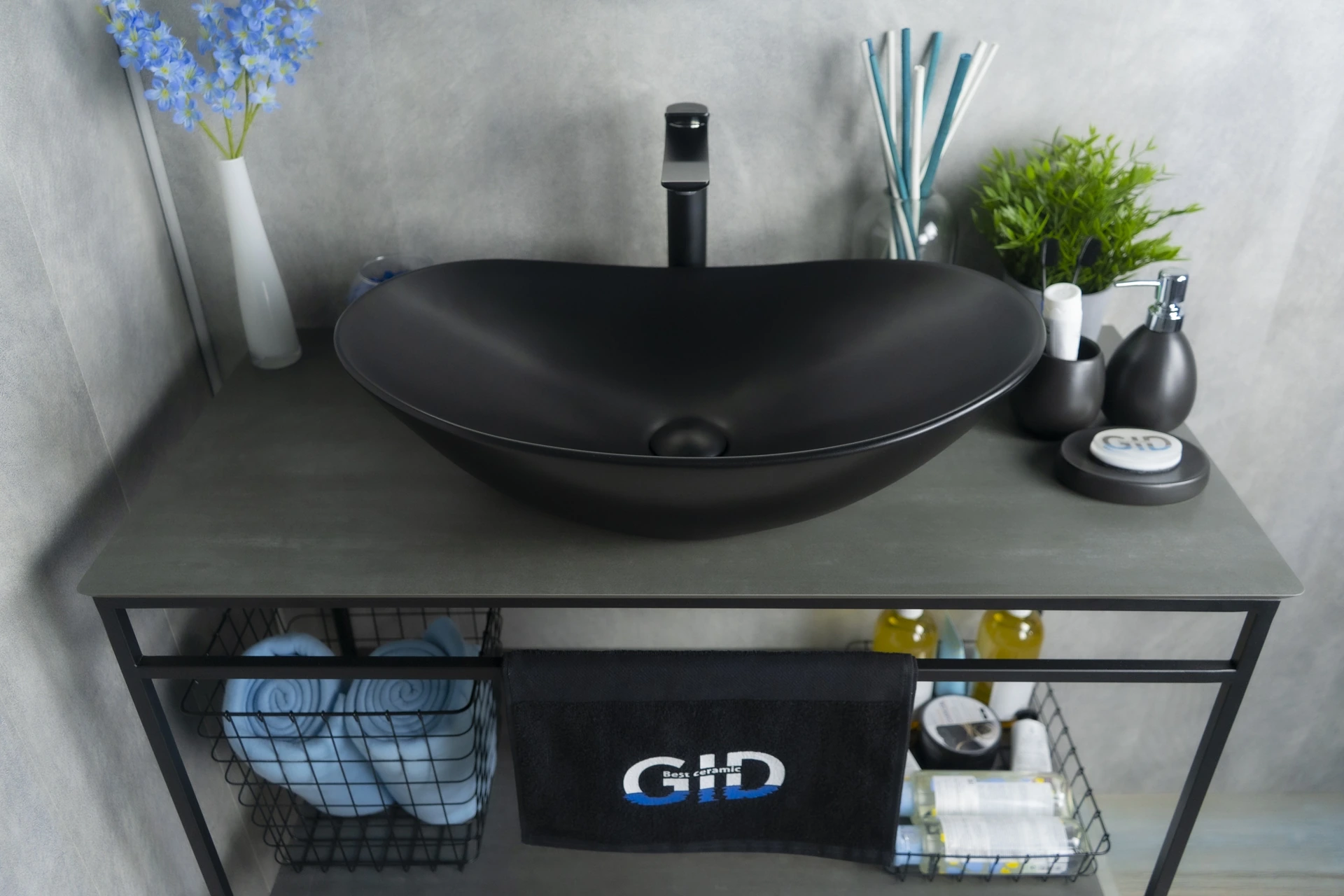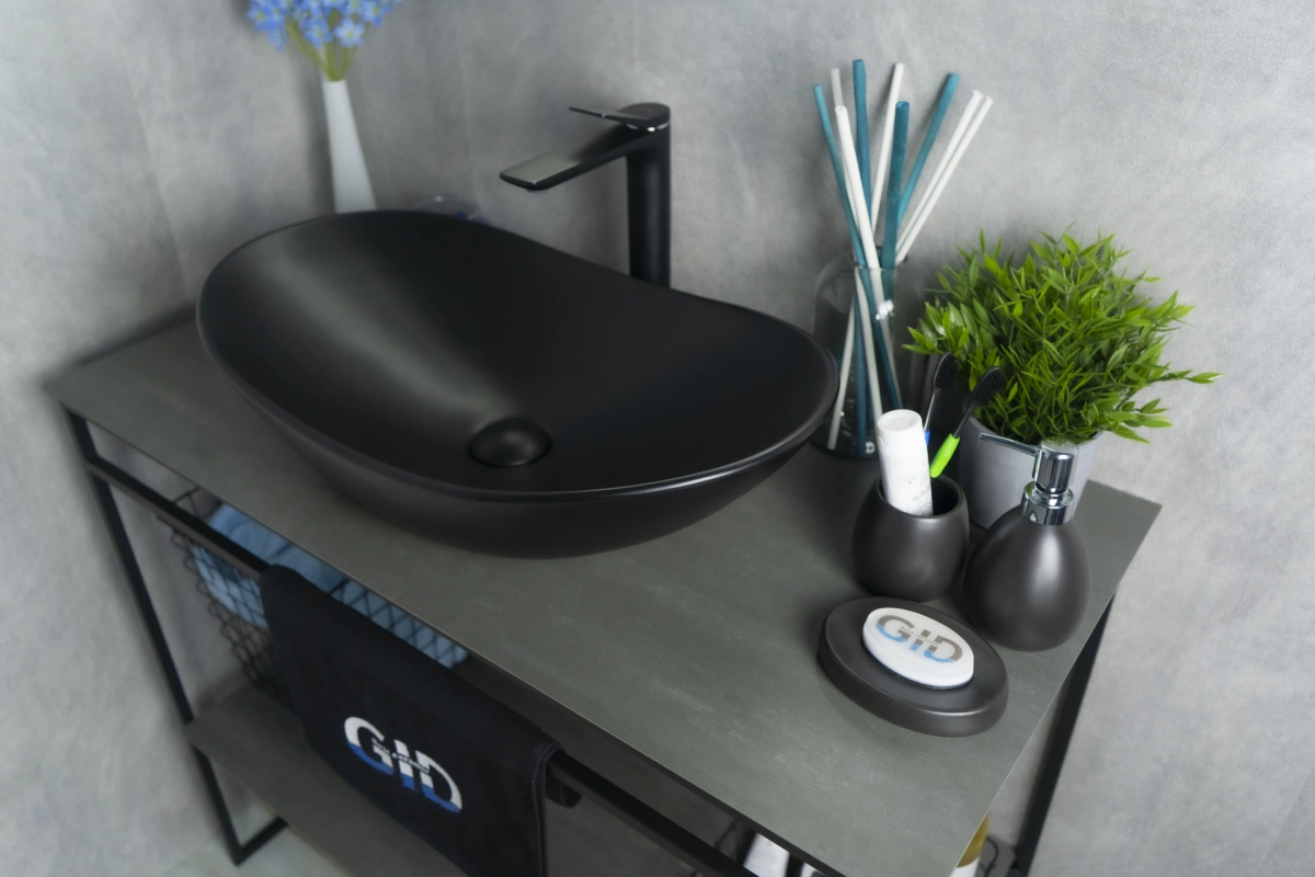 —Раковина керамическая Gid Lago 53337 60х40 накладная цвет черный без отверстий под смеситель