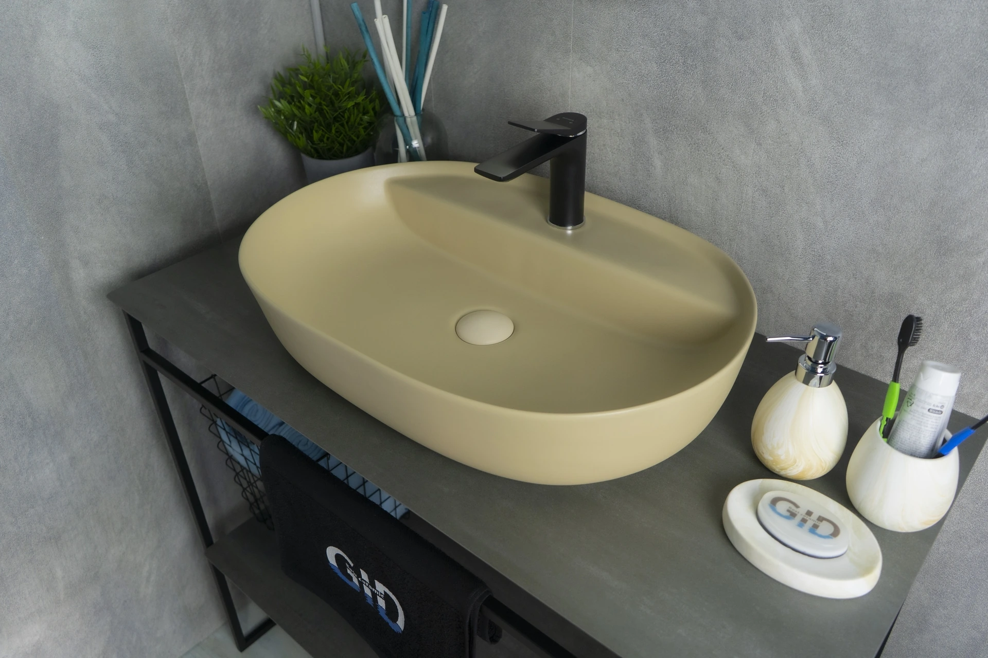 —Раковина керамическая Gid Lago 53343 60х40 накладная цвет коричневый 1 отверстие под смеситель