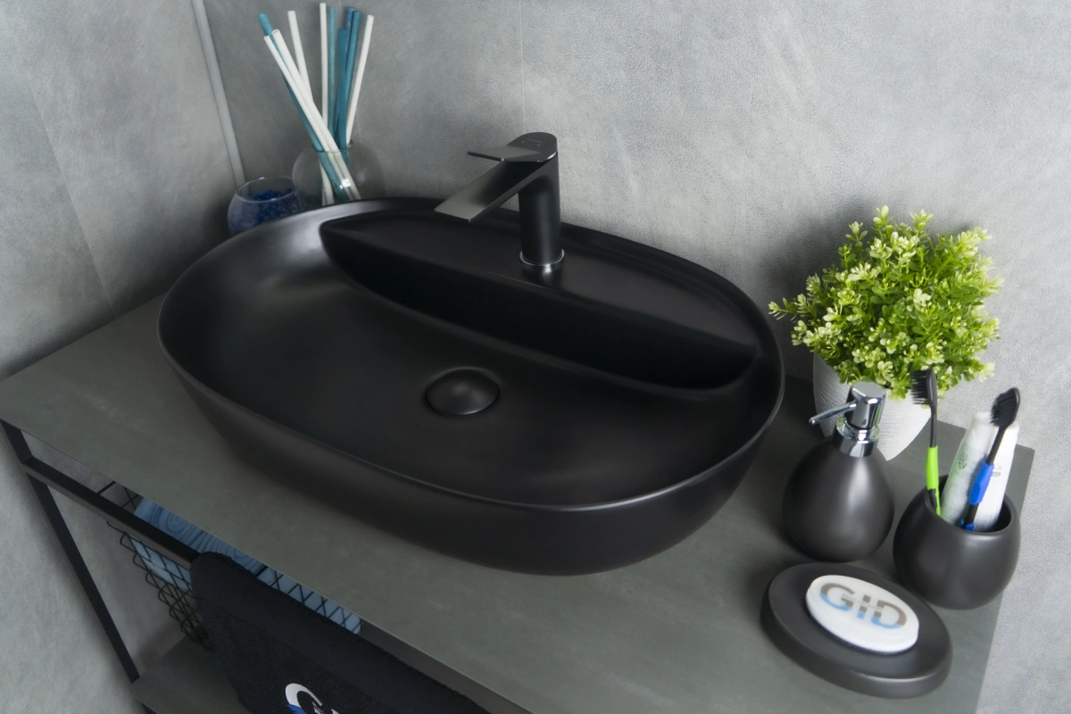 —Раковина керамическая Gid Lago 53345 60х40 накладная цвет черный 1 отверстие под смеситель