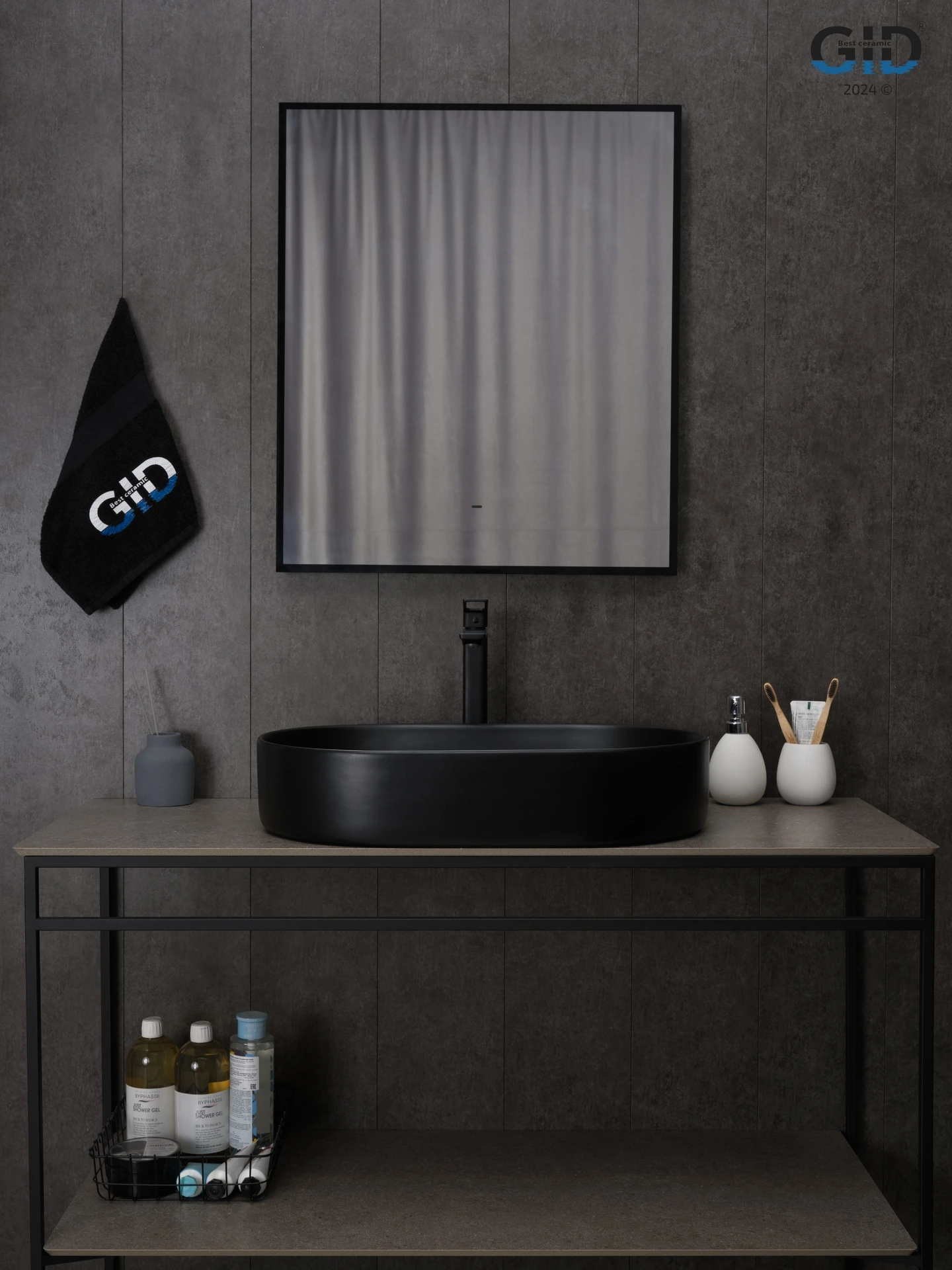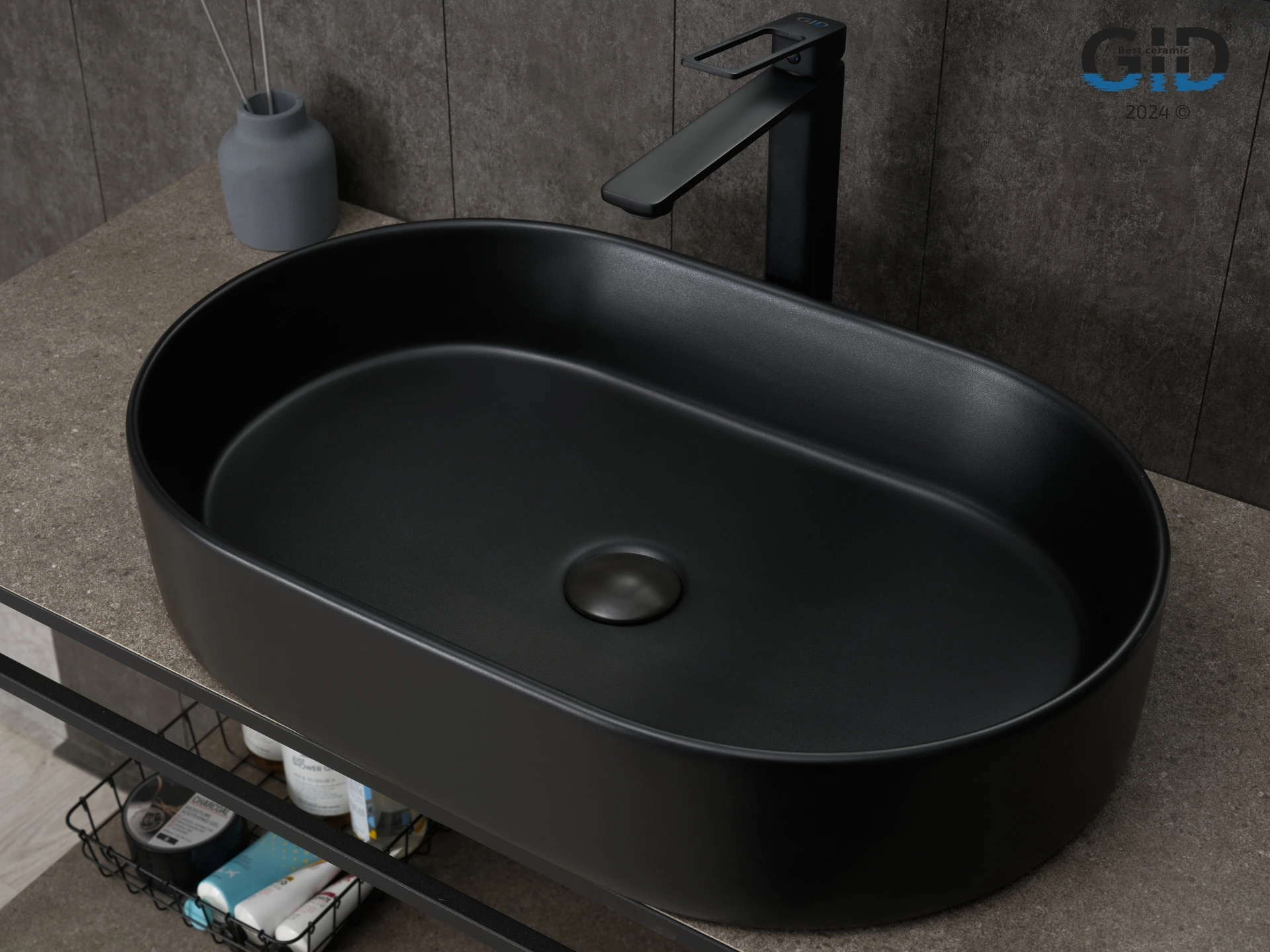 —Раковина керамическая Gid Lago 53354 60х40 накладная цвет черный без отверстий под смеситель