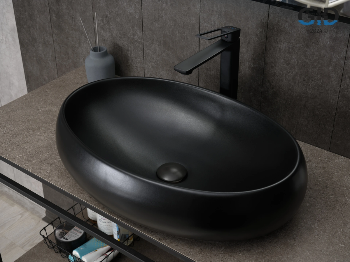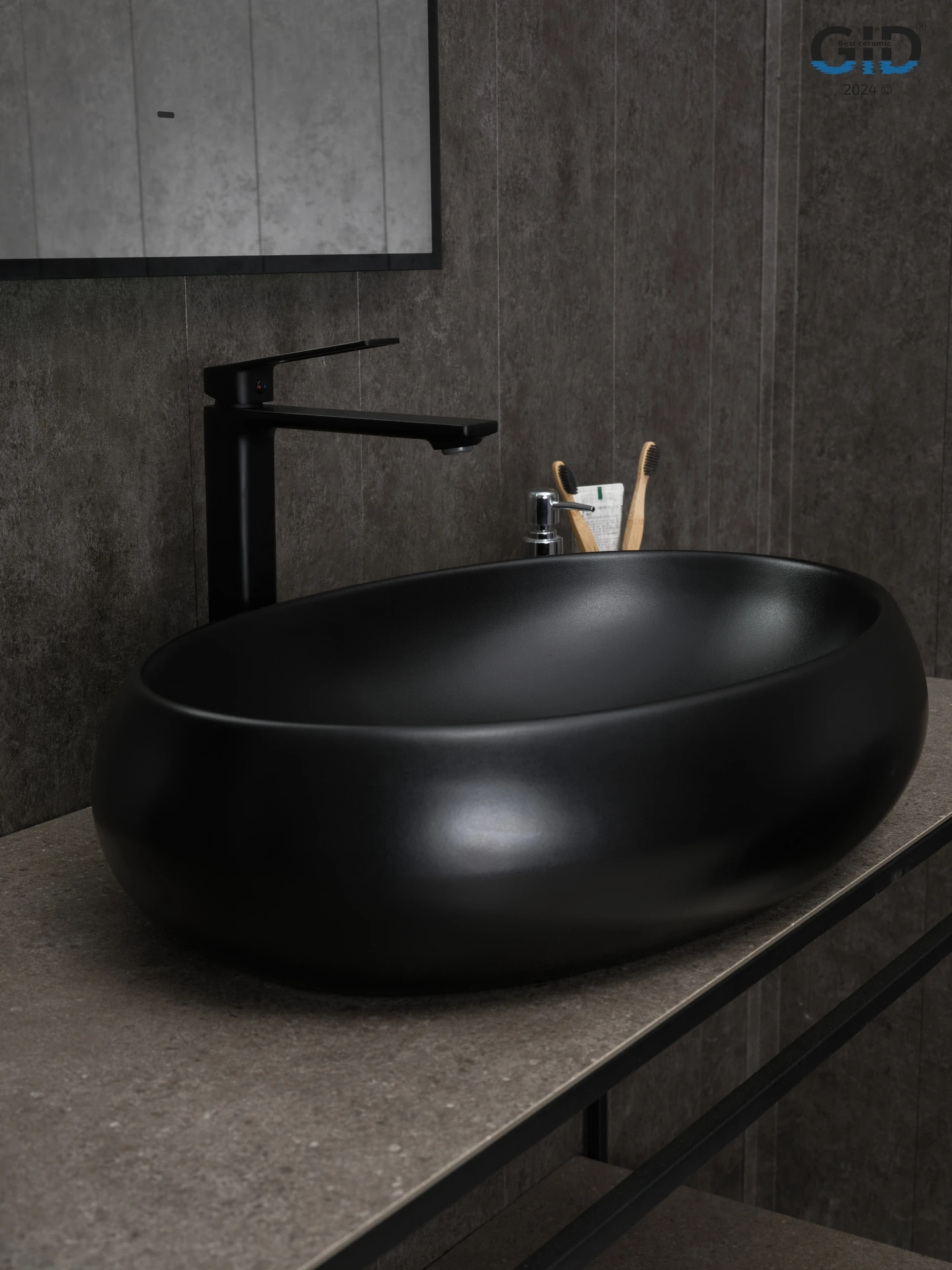 —Раковина керамическая Gid Lago 53371 60х40 накладная цвет черный без отверстий под смеситель