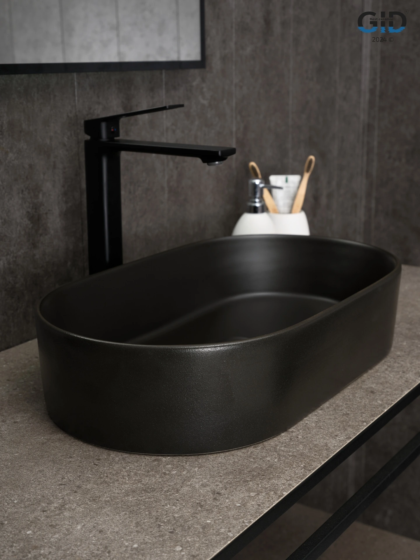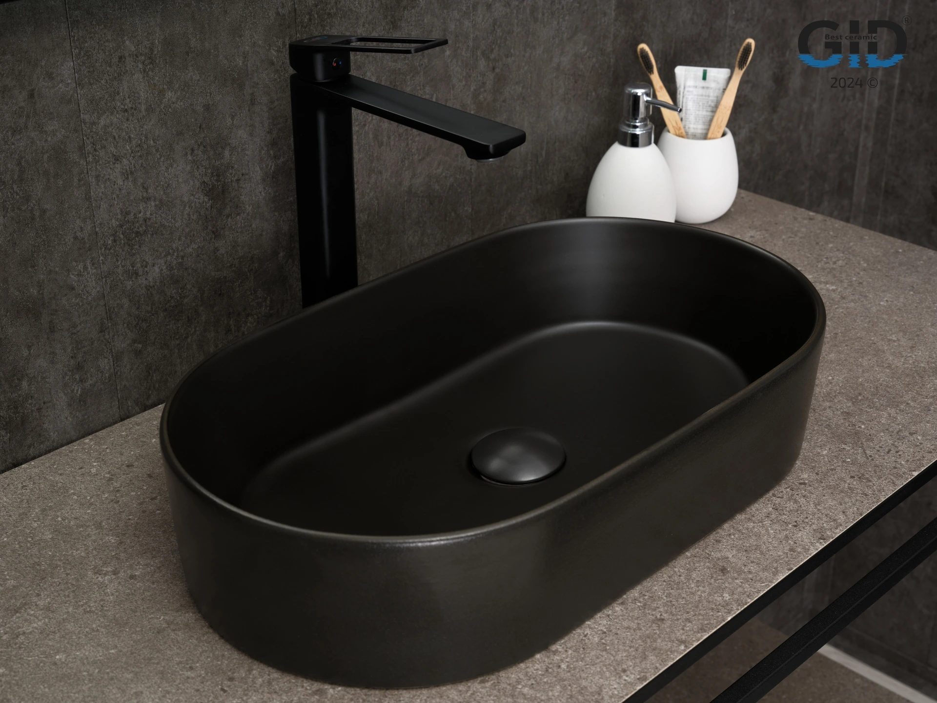 Раковина керамическая Gid Lago 53379 50х30 накладная цвет черный без отверстий под смеситель