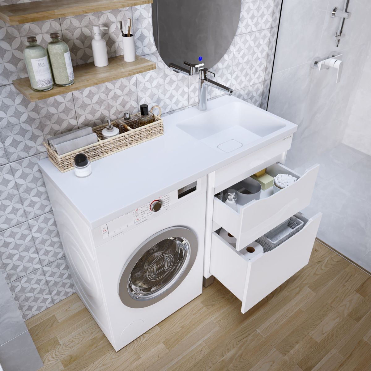 Подходит для установки над стиральной машинкой