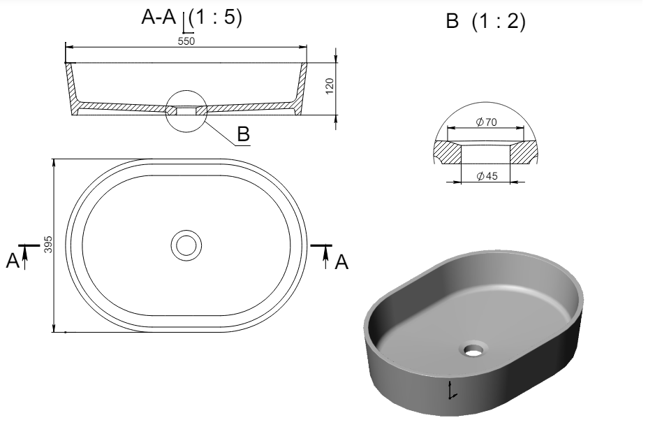 Раковина белая матовая на всю толщину