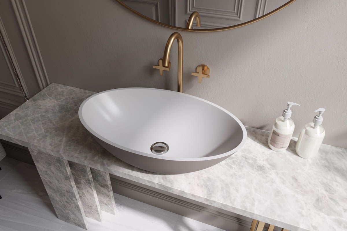—Раковина из искусственного камня Holbi DIONE 1.02.006.11.1 60х40 накладная цвет белый без отверстий под смеситель