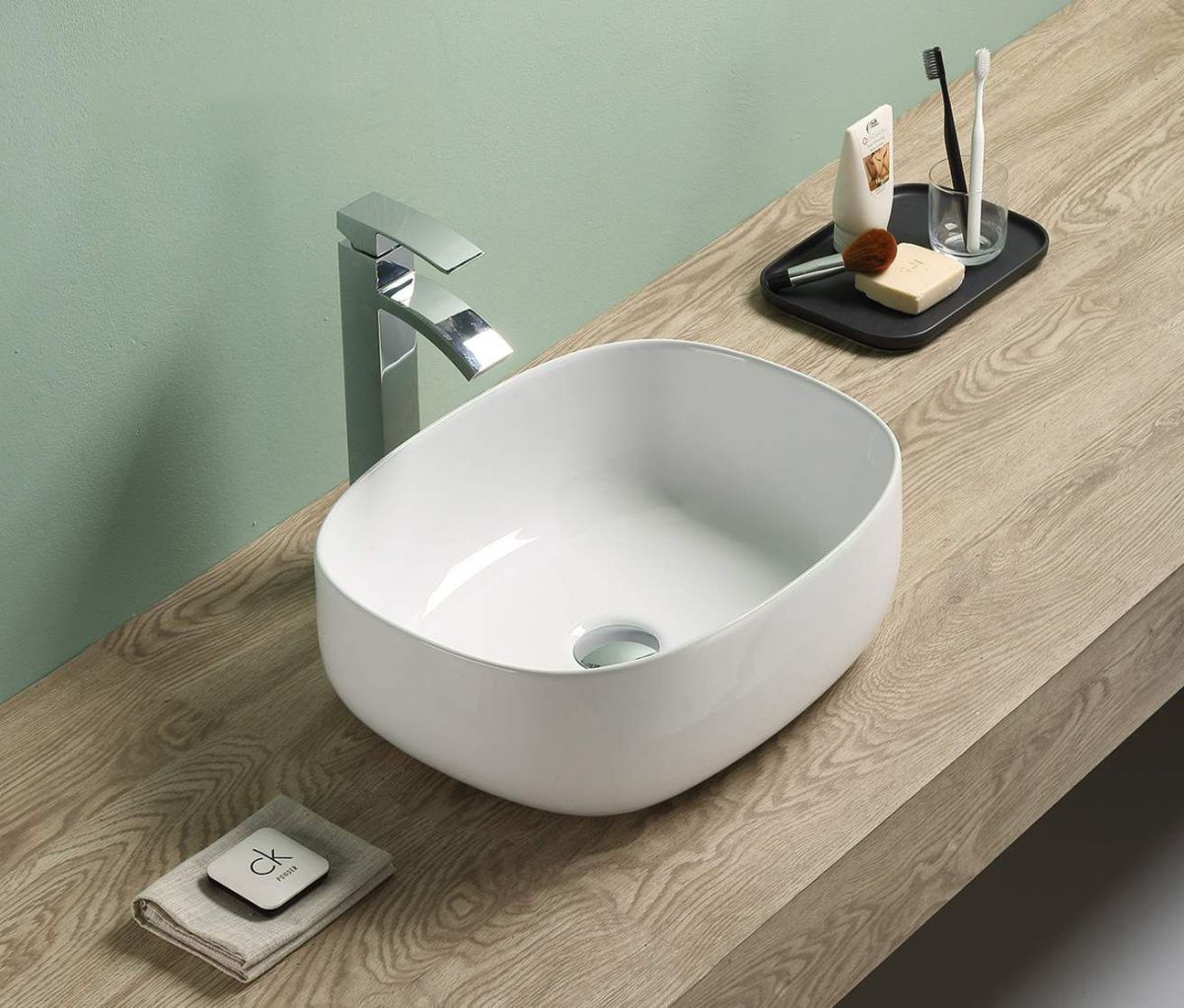 —Раковина из сантехнического фаянса Velvex 78542 50х40 накладная цвет белый без отверстий под смеситель