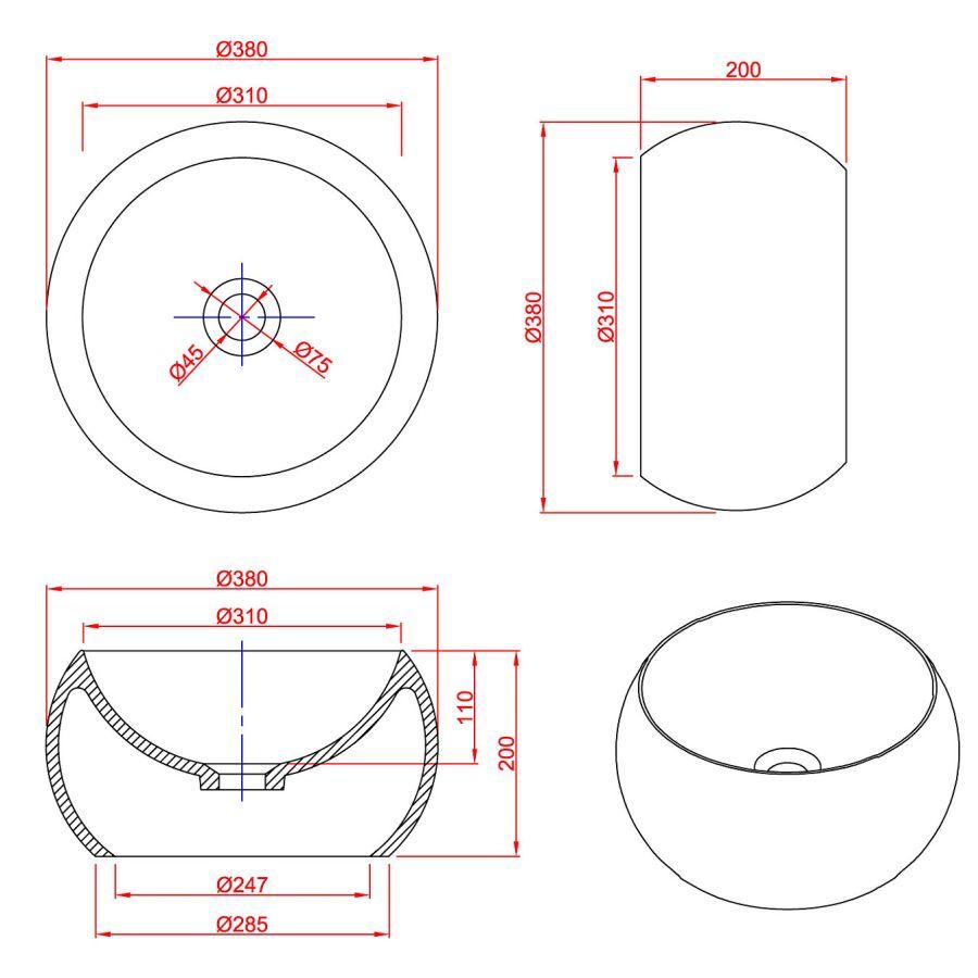 —Раковина из искусственного камня MonteBianco Palla 12033 40х40 накладная цвет белый без отверстий под смеситель
