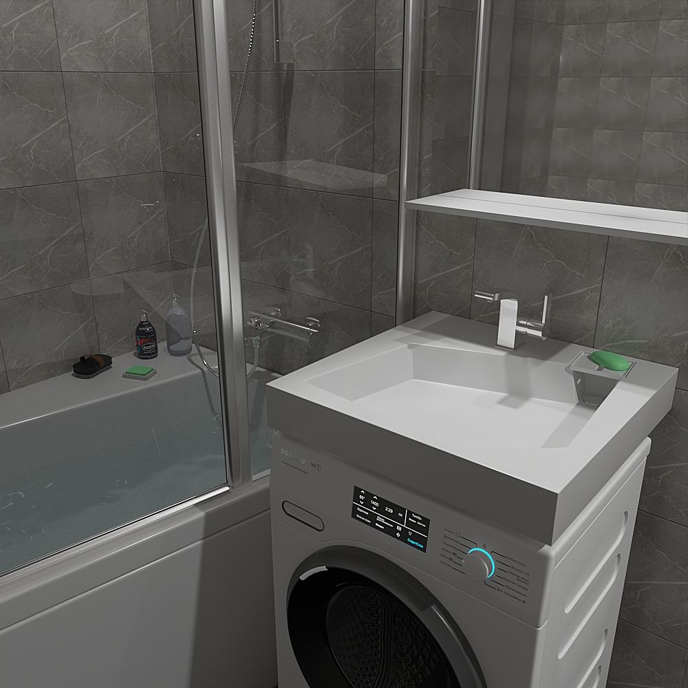 —Раковина из искусственного камня Altasan QUADRO UPP60QUADROs 60х60 над стиральной машиной цвет белый 1 отверстие под смеситель
