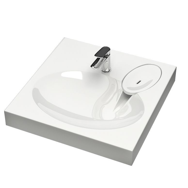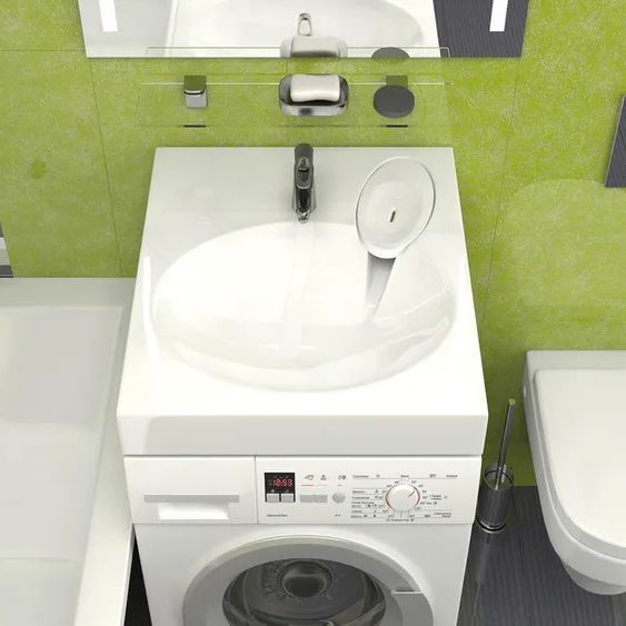 —Раковина из искуственного мрамора Reflexion Gamma RX6060GM 60x60 над стиральной машиной цвет белый 1 отверстие под смеситель