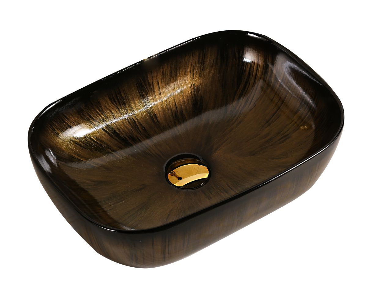 Раковина из сантехнического фарфора Milleau BOUTIQUE MU0078B-GBG 50х30 накладная цвет черный/золото без отверстий под смеситель
