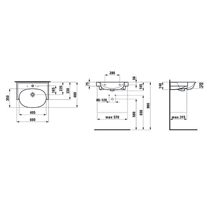 —Раковина керамическая Laufen New Classic 8.1385.3.000.104.1 60 см накладная цвет белый 1 отверстие под смеситель