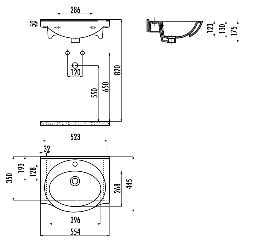 —Раковина из сантехнического фарфора Creavit ETOL ET155-00CB00E-0000 60х40 накладная цвет белый