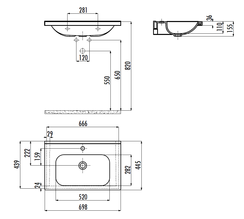 —Раковина из сантехнического фарфора Creavit ideal ID070-00CB00E-0000 70х40 накладная цвет белый