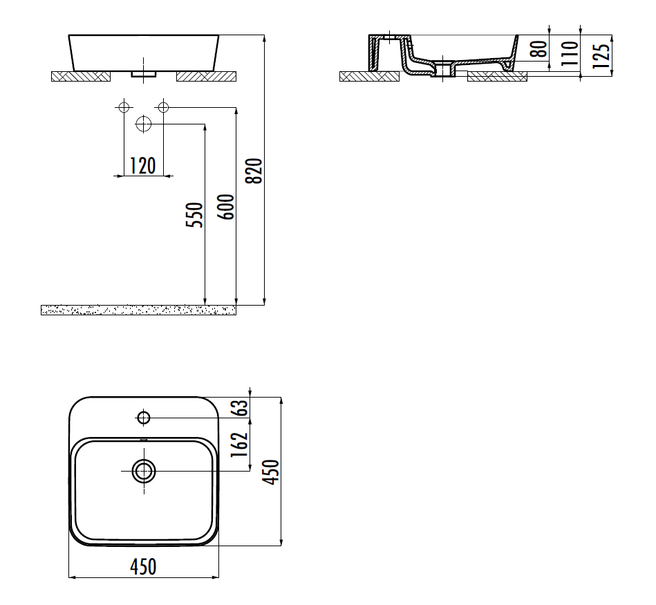 —Раковина из сантехнического фарфора Creavit Loop LP046-00CB00E-0000 50х50 накладная цвет белый