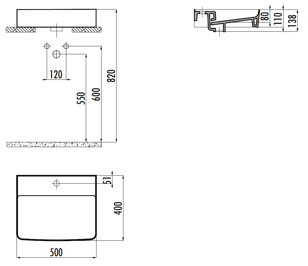 —Раковина из сантехнического фарфора Creavit Ruby RB051-00MB42E-0000 50х40 накладная цвет белый