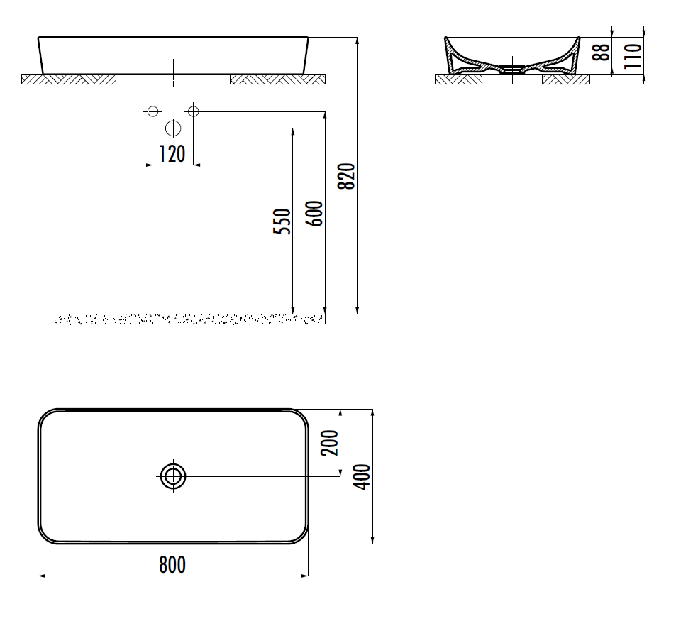 —Раковина из сантехнического фарфора Creavit Ultra UL080-00CB00E-0000 80х40 накладная цвет белый 1 отверстие под смеситель