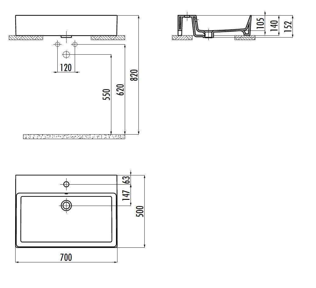 —Раковина из сантехнического фарфора Creavit Volga VX270-00CB00E-0000 70х50 накладная цвет белый