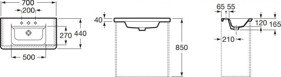 —Раковина из сантехнического фарфора Roca The Gap Unik 7327471000 70х40 накладная цвет белый