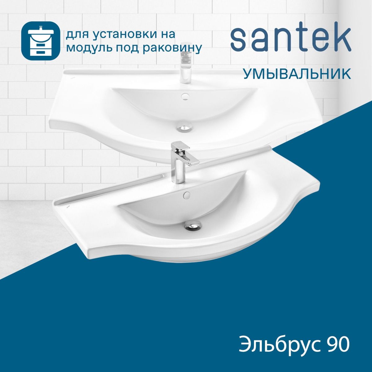 —Раковина из сантехнического фарфора Santek Эльбрус WH110790 90х50 накладная цвет белый