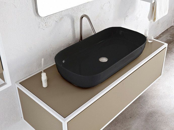 Раковина керамическая Scarabeo Glam 1803 49 BK 80х40 накладная цвет черный без отверстий под смеситель