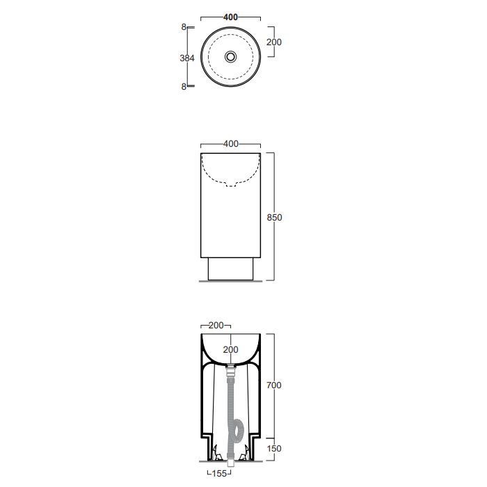 —Раковина керамическая Simas Po-mo 40 см PO08bi напольная цвет белый без отверстий под смеситель