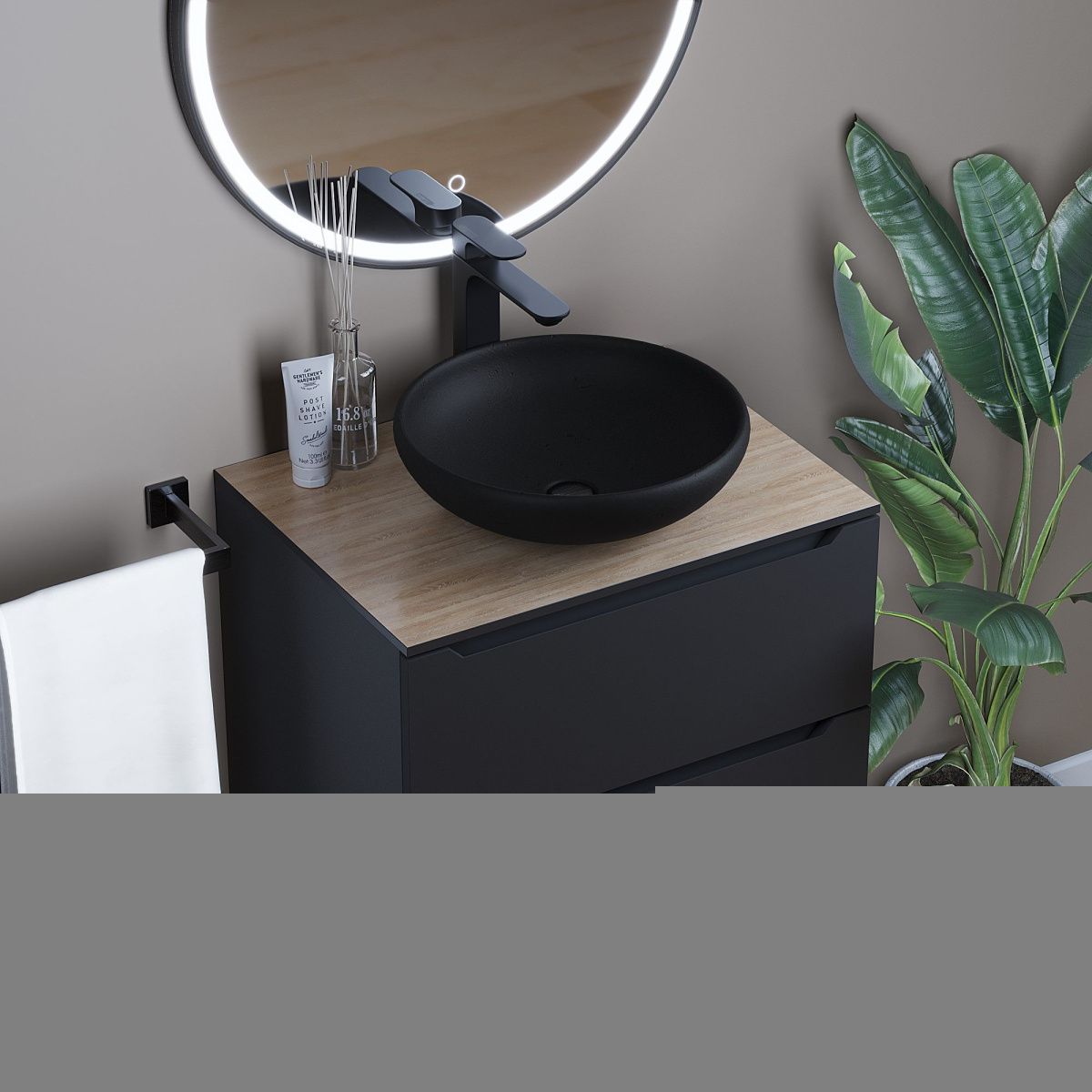 —Раковина из искусственного камня Uperwood Sfera 291020318 40х40 накладная цвет черный