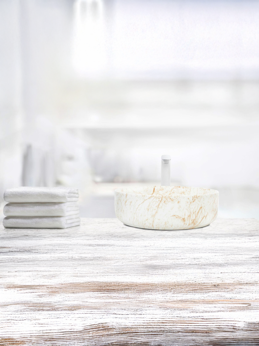 —Раковина из сантехнического фаянса WeltWasser WW SK 10000004542 40 см накладная цвет белый/бежевый без отверстий под смеситель