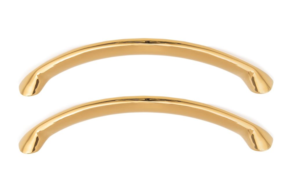 Комплект  золотых ручек для чугунной ванны Vinsent Veron. В комплекте 2 ручки, с межосевым расстоянием 22,8 см. Ручки полностью готовы и укомплектованы болтами для монтажа, поэтому Вам не придется ничего покупать дополнительно. Надежно крепятся к ванне и обеспечивают удобство в пользование.