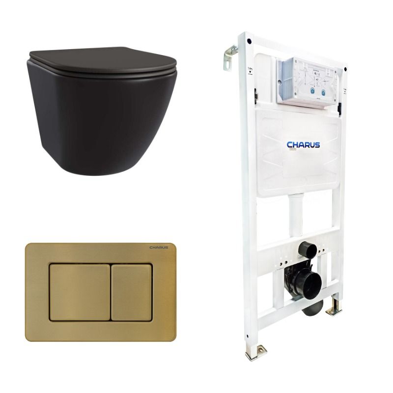 Сет унитаз + инсталляция + кнопка CC.300.80.01+FP.310.BG.05+AM25010 Nero