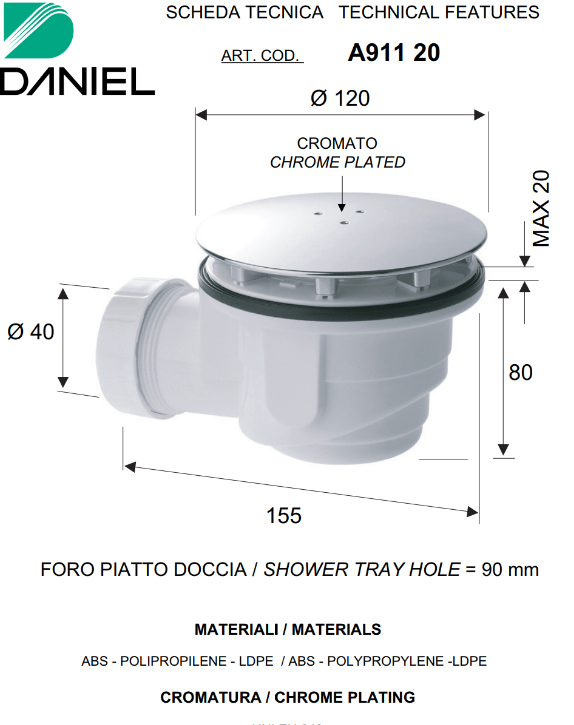 —Сифон для душевого поддона Daniel SHOWERS A911 20cr хром