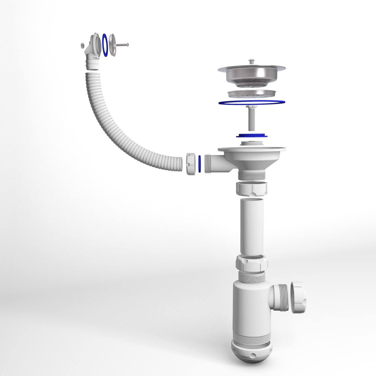 Сифон для кухонных моек с диаметром сливного отверстия 90мм, бутылочного типа. С разборным выпуском и нержавеющей решеткой, с круглым переливом для композитных моек. Выход для подключения к канализации 40мм