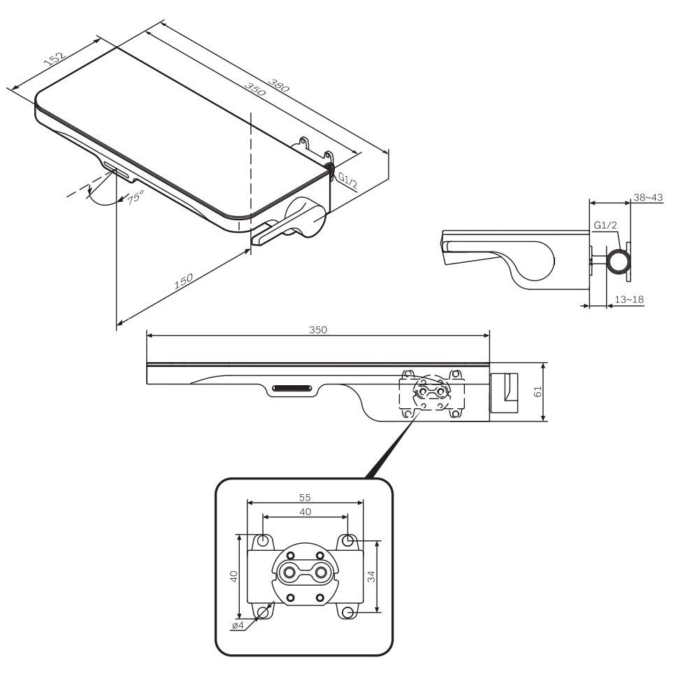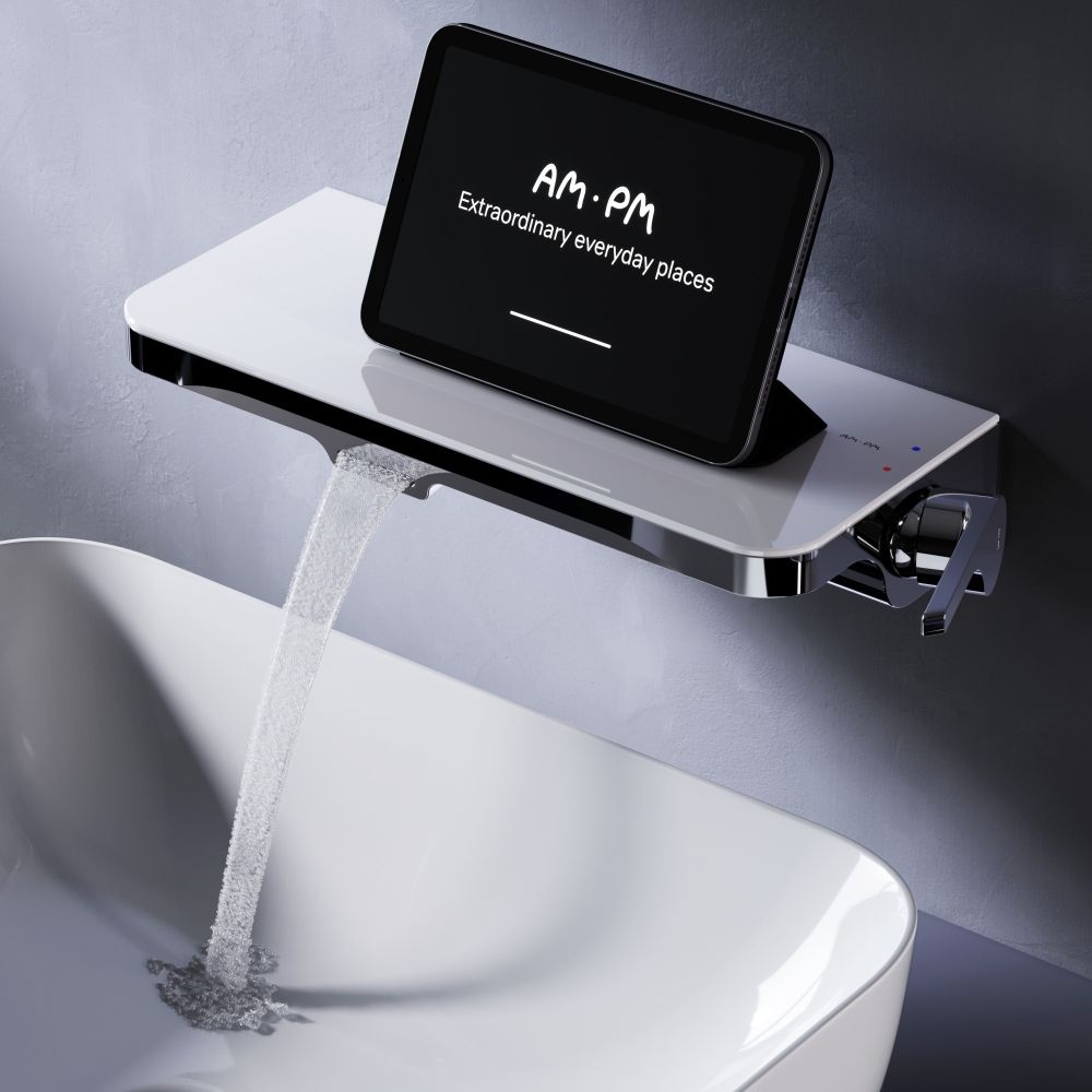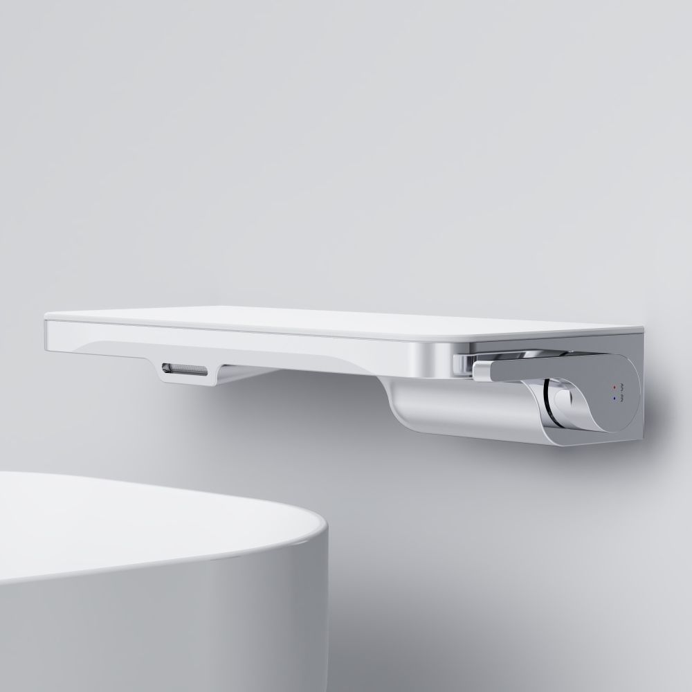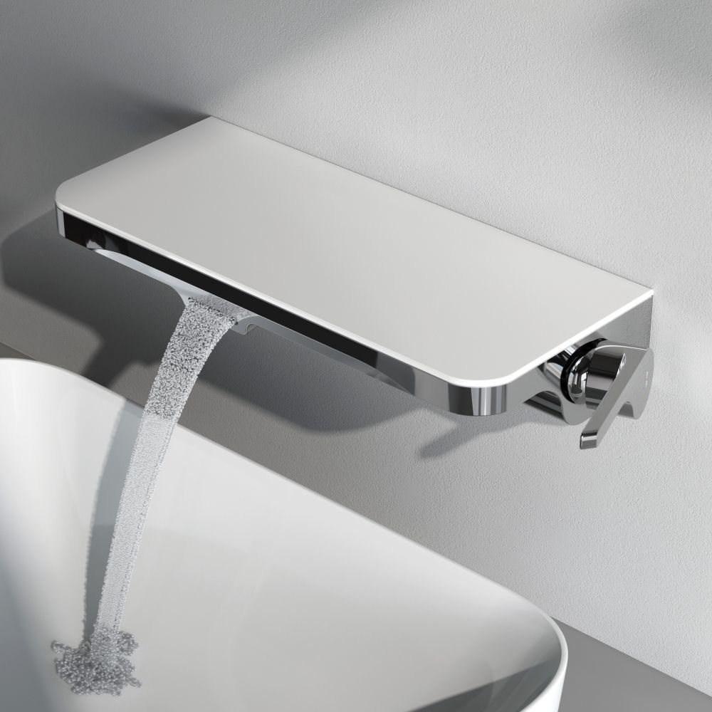 Еще больше полезного пространства: смеситель выполнен в виде вместительной полочки. Внушительный размер полки (35 см) позволяет хранить все любимые средства под рукой а эстетичный силуэт станет настоящим украшением современной ванной комнаты.