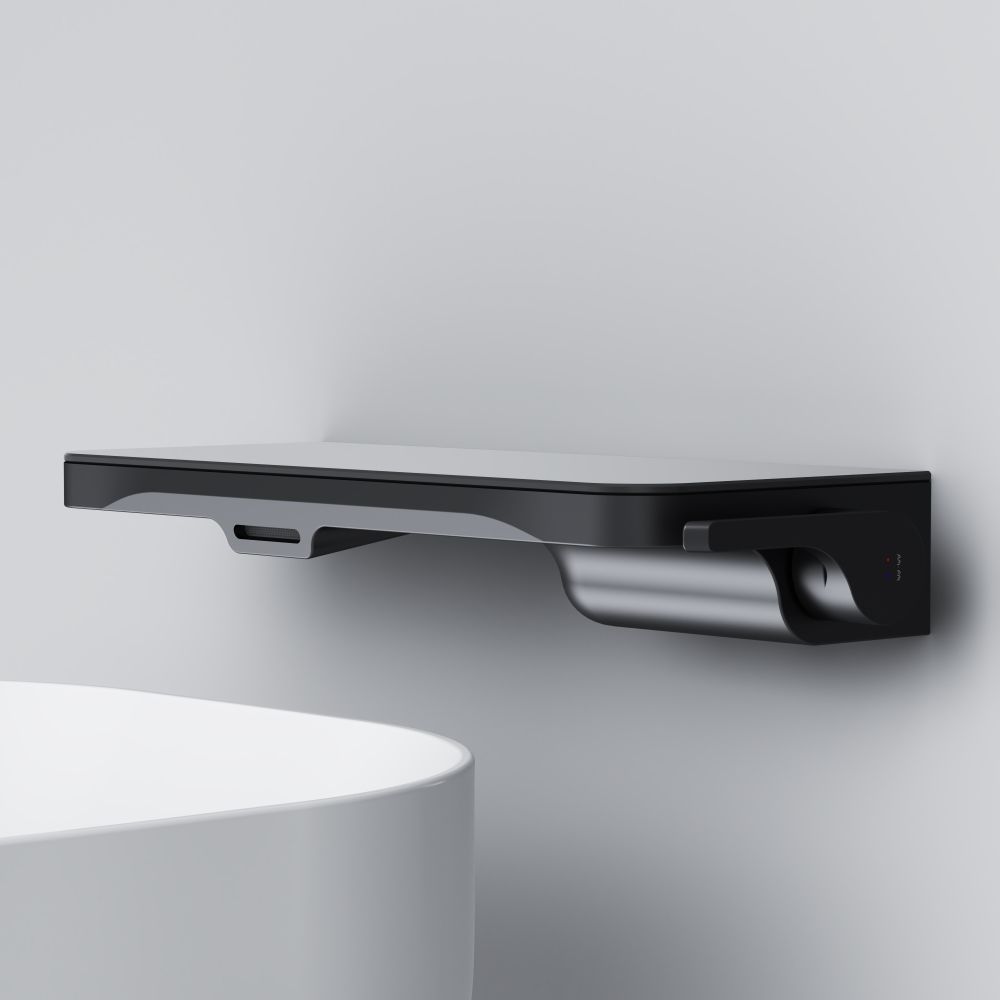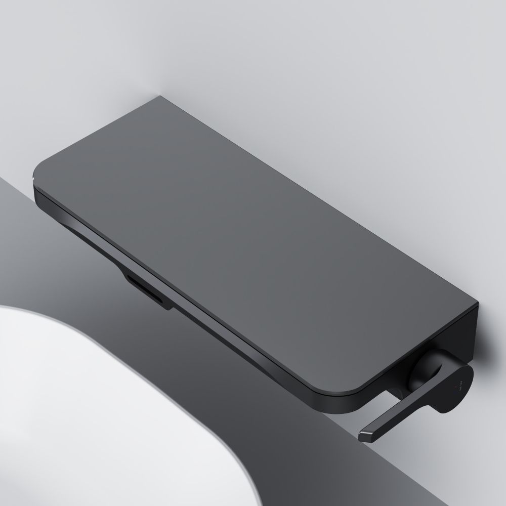 Еще больше полезного пространства: смеситель выполнен в виде вместительной полочки. Внушительный размер полки (35 см) позволяет хранить все любимые средства под рукой а эстетичный силуэт станет настоящим украшением современной ванной комнаты.