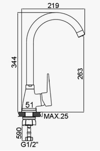 —Смеситель для кухни D-Lin D150362 на мойку хром