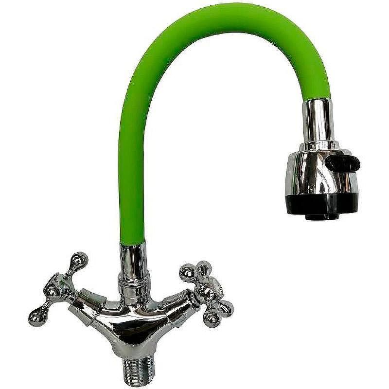 —Смеситель для кухни D-Lin D153810-5T на мойку хром/зеленый