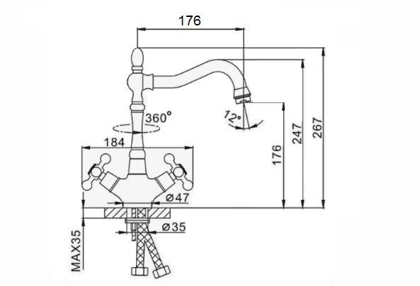 —Смеситель для кухни D-Lin D155816-1 на мойку бронза