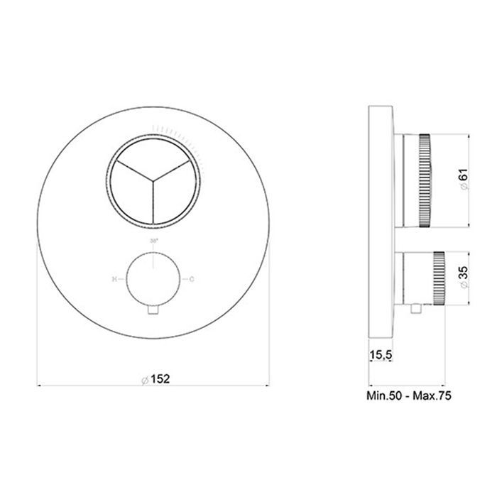 —Смеситель для душа Almar Core E176633.MB встраиваемый в стену черный (внешняя часть) с термостатом
