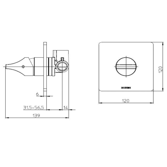 —Смеситель для душа Bossini Apice Z00504.073 встраиваемый в стену черный (внешняя часть)