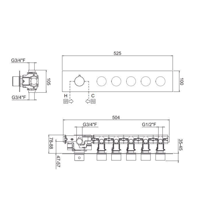 Смеситель для душа Carimali Iltondo 21059EST/O-CR встраиваемый в стену хром (внешняя часть) с термостатом