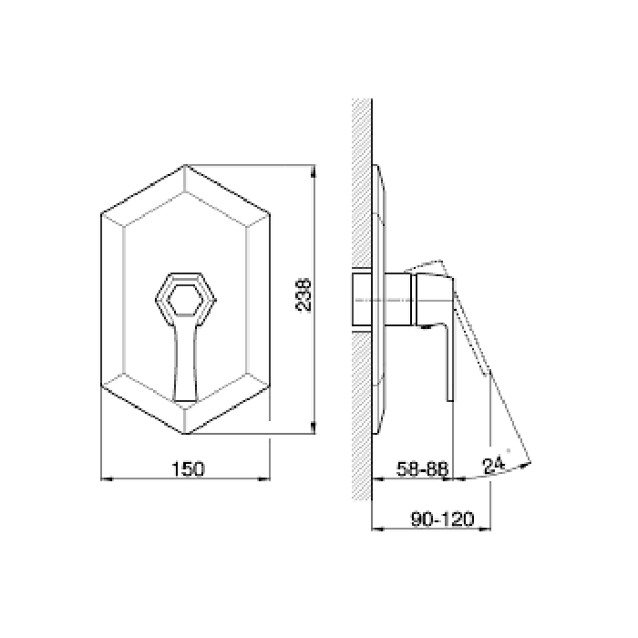 —Смеситель для душа Cisal Apice CH0030007C встраиваемый в стену золото (внешняя часть)